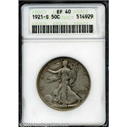 <table><tr><td><TABLE cellSpacing=0 cellPadding=0 width="100%" bgColor=#000000 border=0><TBODY> <TR><TD width="100%"><TABLE cellSpacing=1 cellPadding=3 width="100%" border=0><TBODY><TR><TD width="100%" bgColor=#79735c><FONT face=arial color=#ffffff size=3><B>Description</B> </FONT></TD></TR><TR><TD width="100%" bgColor=#ffffff><FONT face=arial size=2><B>1921-S 50C XF40 ANACS.</B></I> Almost always seen in something less than the current grade level, the low mintage '21-S half dollar is one of the two or three scarcest Walking Liberty issues in XF and better grades. This piece has a relatively smooth appearance, for a circulated coin, and is both well balanced and pleasing. A problem-free, light-gray example of this popular key date. </FONT></TD></TR></TBODY></TABLE></TD></TR></TBODY></TABLE><BR><A name=PricesRealized></A><TABLE cellSpacing=0 cellPadding=0 width="100%" bgColor=#000000 border=0><TBODY><TR><TD width="100%"><TABLE cellSpacing=1 cellPadding=3 width="100%" border=0><TBODY><TR><TD width="100%" bgColor=#79735c><A name=PR><FONT face=arial color=#ffffff size=3><B>Previous Prices from Heritage Auctions</B> </FONT></A></TD></TR><TR><TD bgColor=#f6f6ed><TABLE cellSpacing=0 cellPadding=0 width="100%" border=1><TBODY><TR><TD align=middle width="33%"><B>Date</B></TD><TD align=middle width="33%"><B>Service</B></TD><TD align=middle width="33%"><B>Price</B></TD></TR><TR bgColor=whitesmoke><TD width="33%"><B>12/04/2001</B></TD><TD width="33%">ANACS</TD><TD width="33%">$2,400.00</TD></TR><TR bgColor=whitesmoke><TD width="33%"><B>09/20/2003</B></TD><TD width="33%">PCGS</TD><TD width="33%">$3,910.00</TD></TR><TR bgColor=whitesmoke><TD width="33%"><B>09/20/2003</B></TD><TD width="33%">ANACS</TD><TD width="33%">$2,932.50</TD></TR><TR bgColor=whitesmoke><TD width="33%"><B>09/28/2002</B></TD><TD width="33%">ANACS</TD><TD width="33%">$3,450.00</TD></TR><TR bgColor=whitesmoke><TD width="33%"><B>09/28/2002</B></TD><TD width="33%">ANACS</TD><TD width="33%">$3,220.00</TD></TR><TR bgColor=whitesmoke><TD width="33%"><B>10/06/2001</B></TD><TD width="33%">PCGS</TD><TD width="33%">$3,105.00</TD></TR><TR bgColor=whitesmoke><TD width="33%"><B>08/07/1998</B></TD><TD width="33%">NGC</TD><TD width="33%">$2,645.00</TD></TR><TR bgColor=whitesmoke><TD width="33%"><B>01/10/1998</B></TD><TD width="33%">ANACS</TD><TD width="33%">$1,006.25</TD></TR><TR bgColor=whitesmoke><TD width="33%"><B>01/10/1998</B></TD><TD width="33%">NGC</TD><TD width="33%">$3,220.00</TD></TR><TR bgColor=whitesmoke><TD width="33%"><B>08/02/1997</B></TD><TD width="33%">ANACS</TD><TD width="33%">$2,702.50</TD></TR><TR bgColor=whitesmoke><TD width="33%"><B>09/21/1996</B></TD><TD width="33%">ANACS</TD><TD width="33%">$2,420.00</TD></TR><TR bgColor=whitesmoke><TD width="33%"><B>03/16/1996</B></TD><TD width="33%">ANACS</TD><TD width="33%">$2,810.50</TD></TR><TR bgColor=whitesmoke><TD width="33%"><B>03/16/1996</B></TD><TD width="33%">ANACS</TD><TD width="33%">$2,915.00</TD></TR></TBODY></TABLE></TD></TR><TR><TD bgColor=#ffffff><FONT face=arial size=1 ?>PLEASE NOTE: All prices realized reflect the final hammer price PLUS the buyer's premium in auctions that charge a buyer's premium. Each item has a notation at the top of the listing indicating whether that lot included a buyer's premium. Example: A item that sells with a final hammer price of $100 and a 20% buyer's premium will display with a price realized of $120. All information listed is intended to be as accurate as possible, but errors are possible. Please use this guide carefully and inform us of any inaccuracies. </FONT></TD></TR></TBODY></TABLE></TD></TR></TBODY></TABLE><BR><TABLE cellSpacing=0 cellPadding=0 width="100%" bgColor=#000000 border=0><TBODY><TR><TD width="100%"><TABLE cellSpacing=1 cellPadding=3 width="100%" border=0><TBODY><TR><TD width="100%" bgColor=#79735c colSpan=6><FONT face=arial color=#ffffff size=3><B>Price Guide*</B> </FONT></TD></TR><TR bgColor=#f6f6ed><TD align=middle><B>Grade</B> </TD><TD align=middle><B>Coin World<BR>(Trends)</B> </TD><TD align=middle><B>Numismedia<BR>Retail</B> </TD><TD align=middle><B>Numismedia<BR>Wholesale</B> </TD><TD align=middle><B>Coin<BR>Universe</B> </TD><TD align=middle><B>Heritage<BR>Value Index</B> </TD></TR><TR bgColor=#ffffff><TD align=middle>35</TD><TD align=right>---</TD><TD align=right>---</TD><TD align=right>---</TD><TD align=right>---</TD><TD align=right>$2,267.58</TD></TR><TR style="FONT-WEIGHT: bold" bgColor=#cccfdd><TD align=middle>40</TD><TD align=right>$4,500.00</TD><TD align=right>---</TD><TD align=right>$2,625.00</TD><TD align=right>$4,750.00</TD><TD align=right>$3,316.25</TD></TR><TR bgColor=#ffffff><TD align=middle>45</TD><TD align=right>---</TD><TD align=right>---</TD><TD align=right>---</TD><TD align=right>$5,850.00</TD><TD align=right>$4,028.75</TD></TR><TR bgColor=#ffffff><TD colSpan=6><FONT size=1>*All information listed is intended to be as accurate as possible, but errors are possible. No item may be returned or refused based on this information which is provided as a service to our customers. You should contact each pricing source directly to determine the accuracy of this information. </FONT></TD></TR></TBODY></TABLE></TD></TR></TBODY></TABLE><BR><TABLE cellSpacing=0 cellPadding=0 width="100%" bgColor=#000000 border=0><TBODY><TR><TD width="100%"><TABLE cellSpacing=1 cellPadding=3 width="100%" border=0><TBODY><TR><TD width="100%" bgColor=#79735c><FONT face=arial color=#ffffff size=3><B>Population Guide</B> </FONT></TD></TR><TR bgColor=#ffffff><TD align=middle><!-- Begin Output of Population Grid--><TABLE cellSpacing=0 cellPadding=0 width="100%" border=0><TBODY><TR><TD vAlign=center><TABLE cellSpacing=0 width="100%" border=1 cellsadding="3"><TBODY><TR><TD vAlign=center><TABLE cellSpacing=0 cellPadding=3 width="100%" border=1><TBODY><TR><TD vAlign=center align=middle bgColor=#f0f1e8 colSpan=2 <CENTER><FONT face=Arial size=2><B>PCGS Pop </B></FONT><CENTER></CENTER></TD><TD vAlign=center align=middle bgColor=#f0f1e8 col