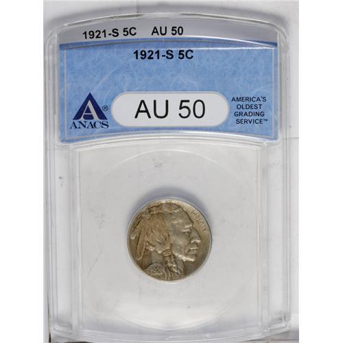 1921-S 5C AU50 ANACS. Nicely struck for this issue wit