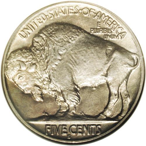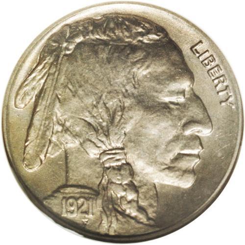 <B>1921-S<5C> MS64 NGC.</B></I> An incredibly nice example of one of the most difficult and elusive issues in the Buffalo nickel series, both in the absolute and conditional senses. This piece shows none of the usual distractions that plague this issue: there are no obvious planchet laminations, grease stains, or metal flow from die erosion present. The strike is so crisp and bold that it appears to be struck from fresh dies on both sides, and the wonderful patination intermixes sunset-gold with magenta, lemon-yellow, and silver-gray on the highpoints. The faintest die crack runs through the Indian's hair, from near the large rear feather about halfway to the temple. This is the only mentionable distraction on this phenomenally lovely and seemingly conservatively graded coin. NGC has graded 27 pieces finer (4/06).