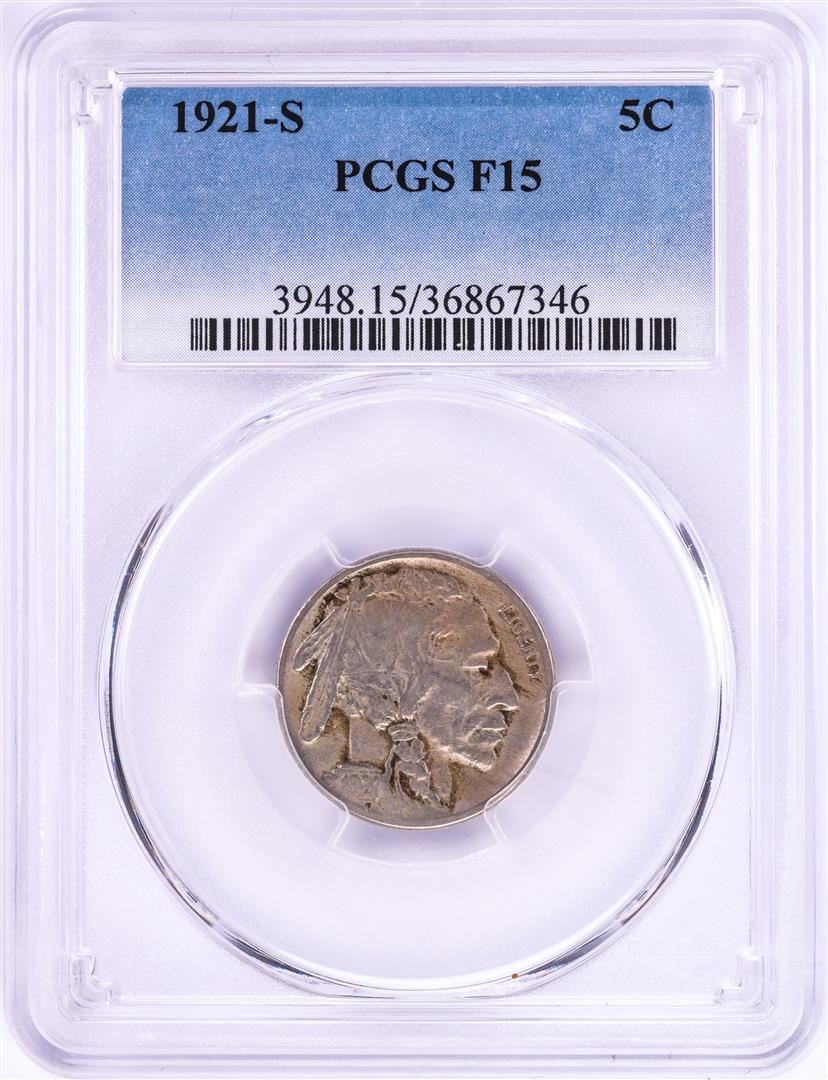 One 1921-S Buffalo Nickel Coin PCGS F15. PCGS Graded.