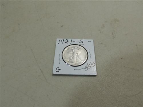 1921-S (G) CIRCULATED WALKING LIBERTY HALF DOLLAR. AS SHOWN. VIEW PICTURE FOR DETAIL.