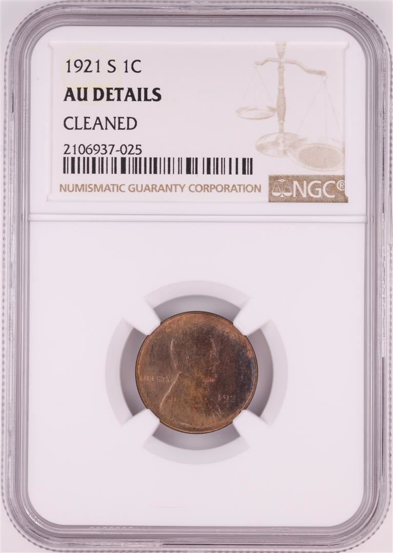 One 1921-S Lincoln Wheat Cent Coin NGC AU Details. NGC Certified.