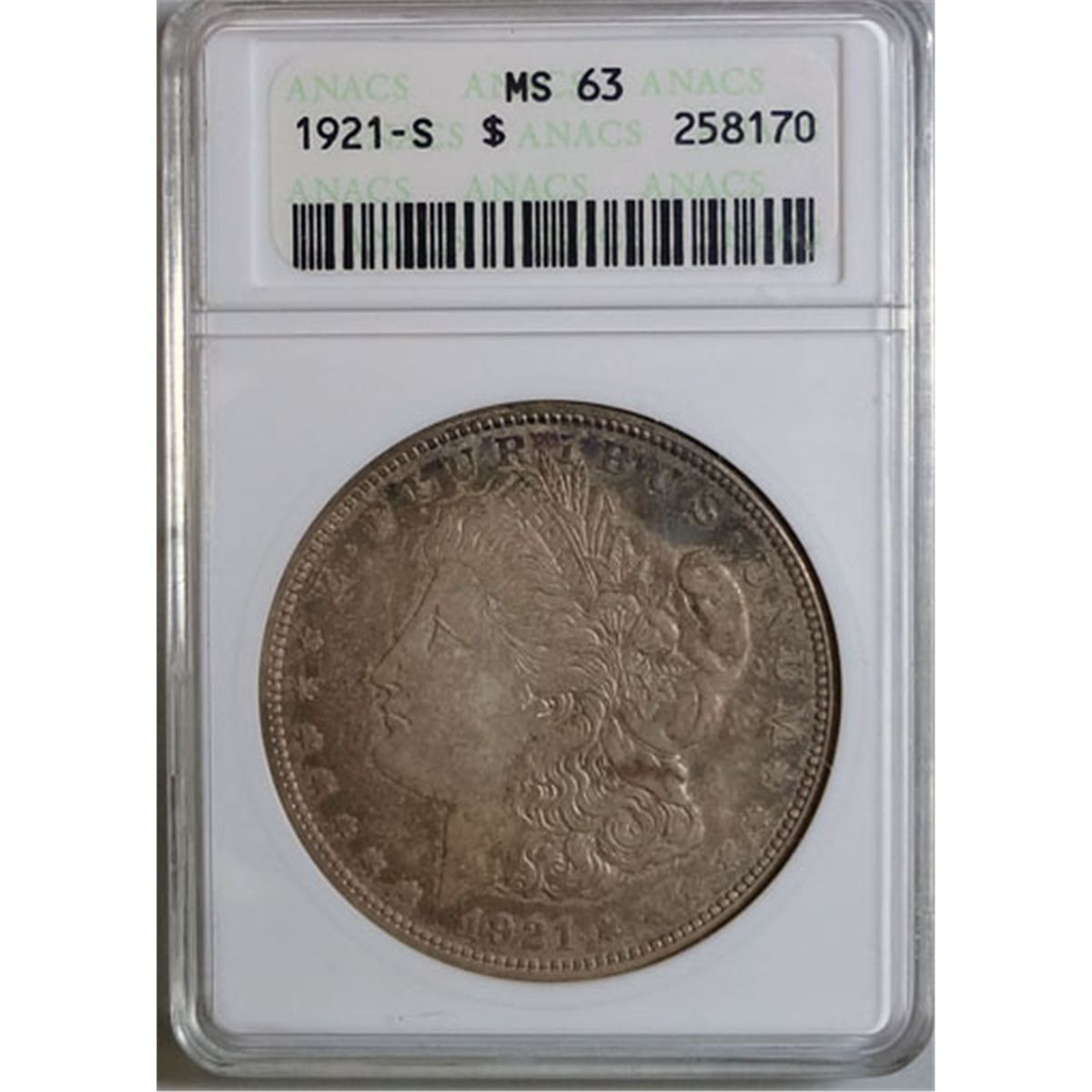 1921-S MORGAN DOLLAR ANAS MS-63 COLOR!!!