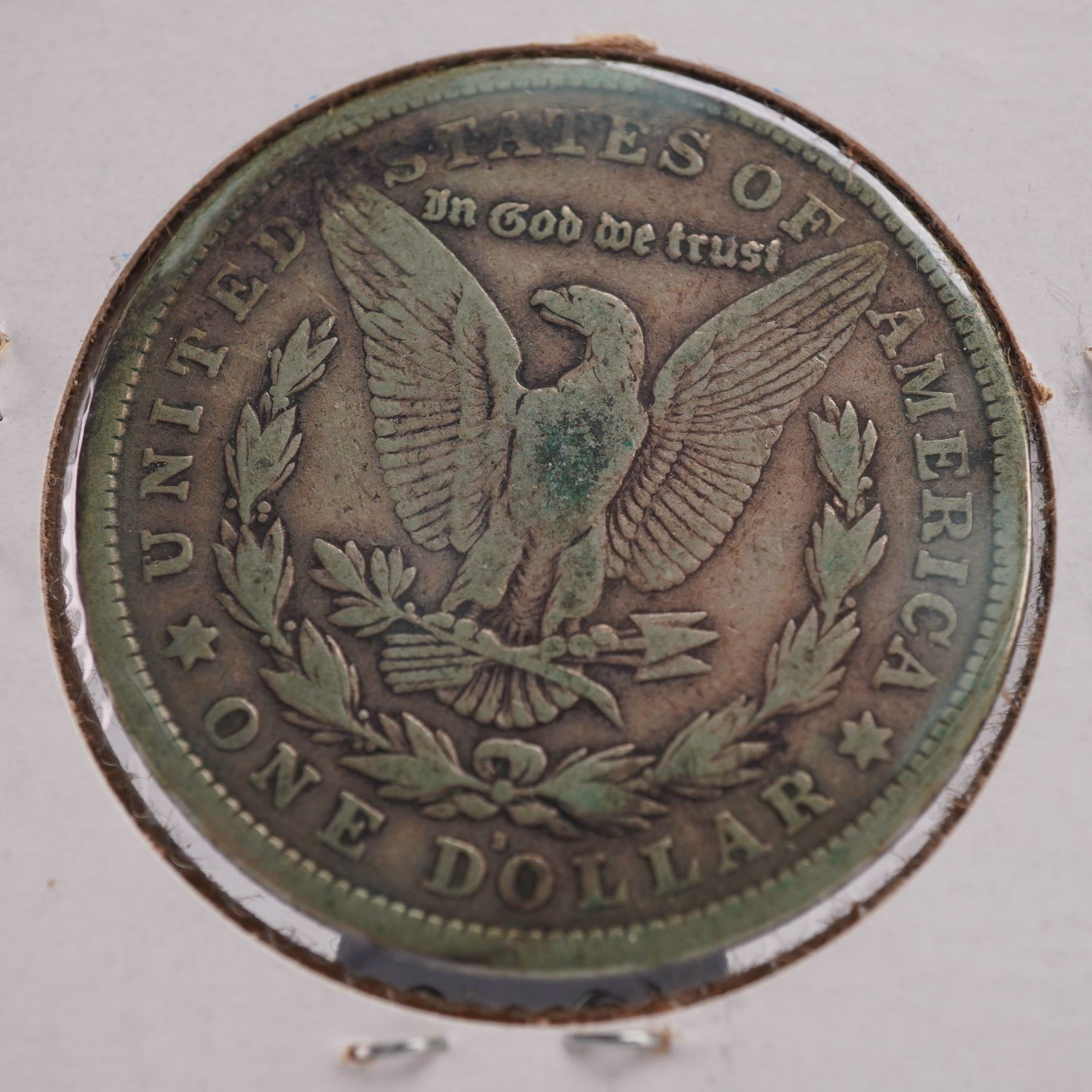 This 1921-S Morgan Silver Dollar, minted in San Francisco and identified by the prominent "S" mintmark, features the time-honored obverse portrait of Liberty facing left, wearing a coronet inscribed LIBERTY and framed by agricultural motifs symbolic of American prosperity, with the motto E PLURIBUS UNUM, thirteen stars, and the date 1921. The reverse reveals a heraldic eagle with wings outspread, clutching both arrows and an olive branch, encircled by a laurel wreath and the inscriptions UNITED STATES OF AMERICA, IN GOD WE TRUST, and ONE DOLLAR. As one of the final issues in the historic Morgan Dollar series. Enclosed in a cardboard holder. Holder measures: 2"L x 2"H. Coin diameter: 38.1 mm.