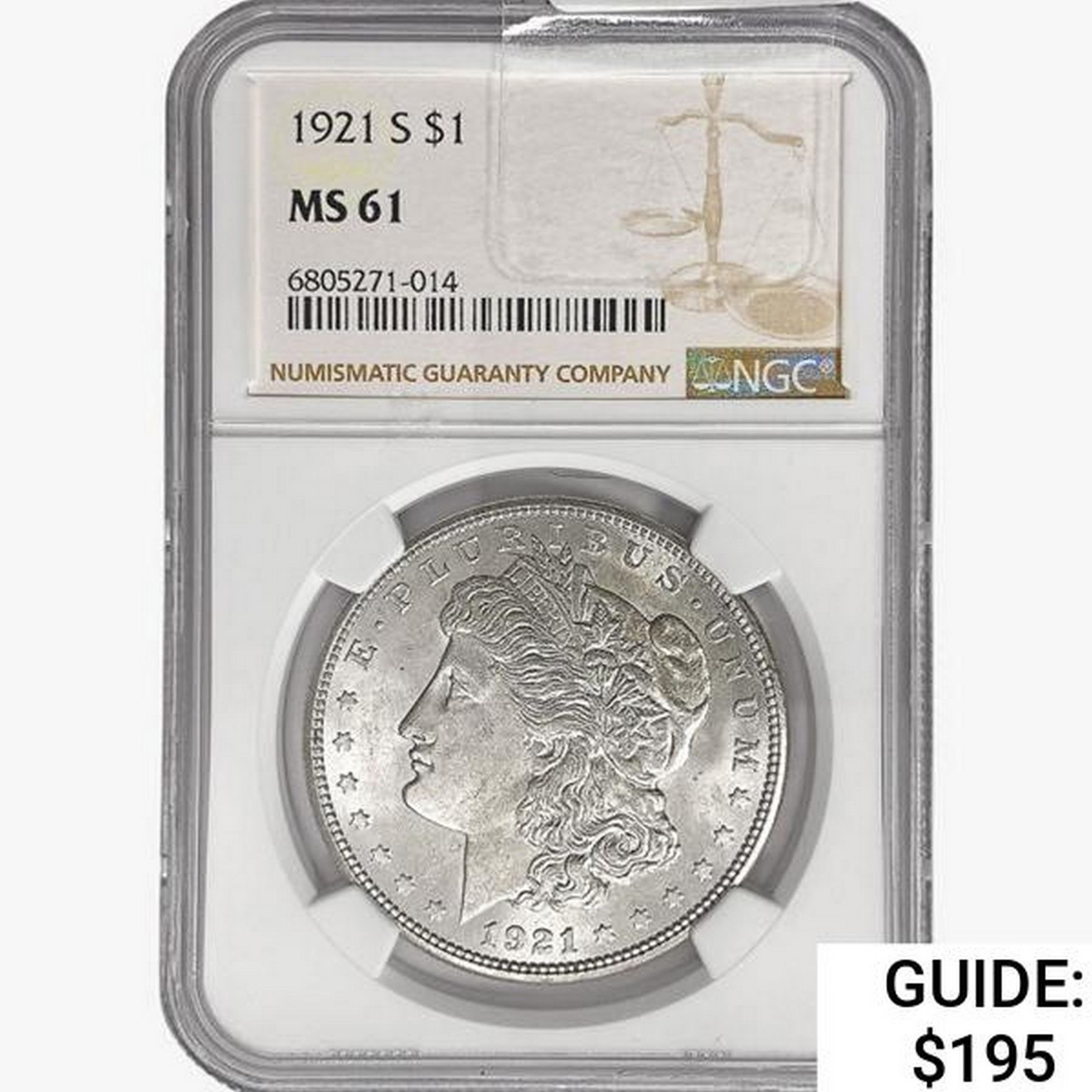 1921-S Morgan Silver Dollar NGC MS61