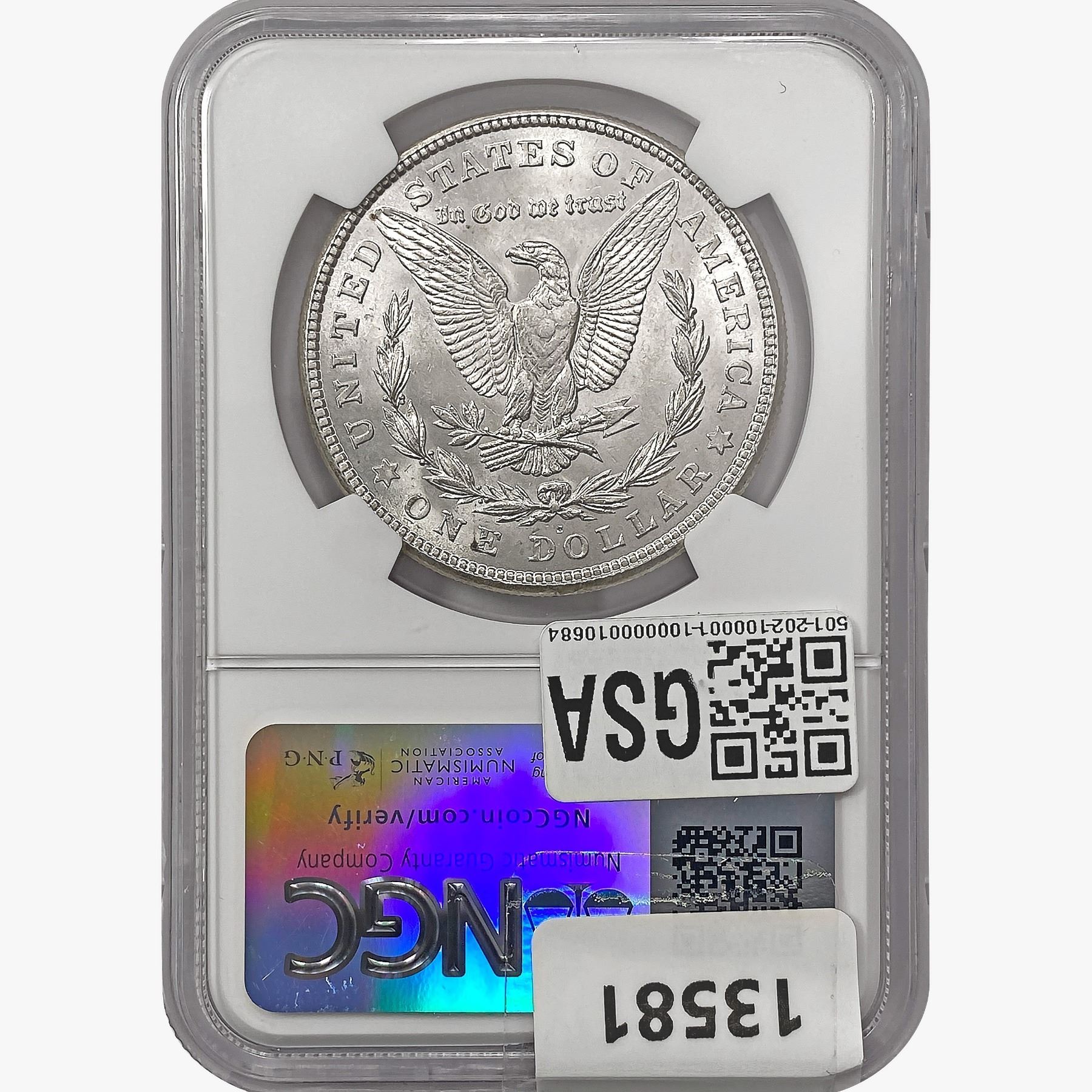 e. Coins sold referencing a third-party grading service are sold "AS IS" without any express or implied warranty, except for a guarantee by GSA that they are genuine. Removal or alteration of the holder, voids all of Bidder's claims concerning that Product. Certain warranties may be available from the grading services and Bidders are referred to them for further details: Numismatic Guaranty Corporation (NGC), PO Box 4776, Sarasota, FL 34230, www.ngccoin.com/services/writtenguarantee.asp; Professional Coin Grading Services (PCGS), PO Box 9458, Newport Beach, CA 92658, www.pcgs.com/guarantee.html; ANACS, 6555 S. Kenton St., Ste. 303, Englewood, CO 80111; and Independent Coin Grading Co. (ICG), 7901 East Bellview, Ave., Suite 50, Englewood, CO 80111.