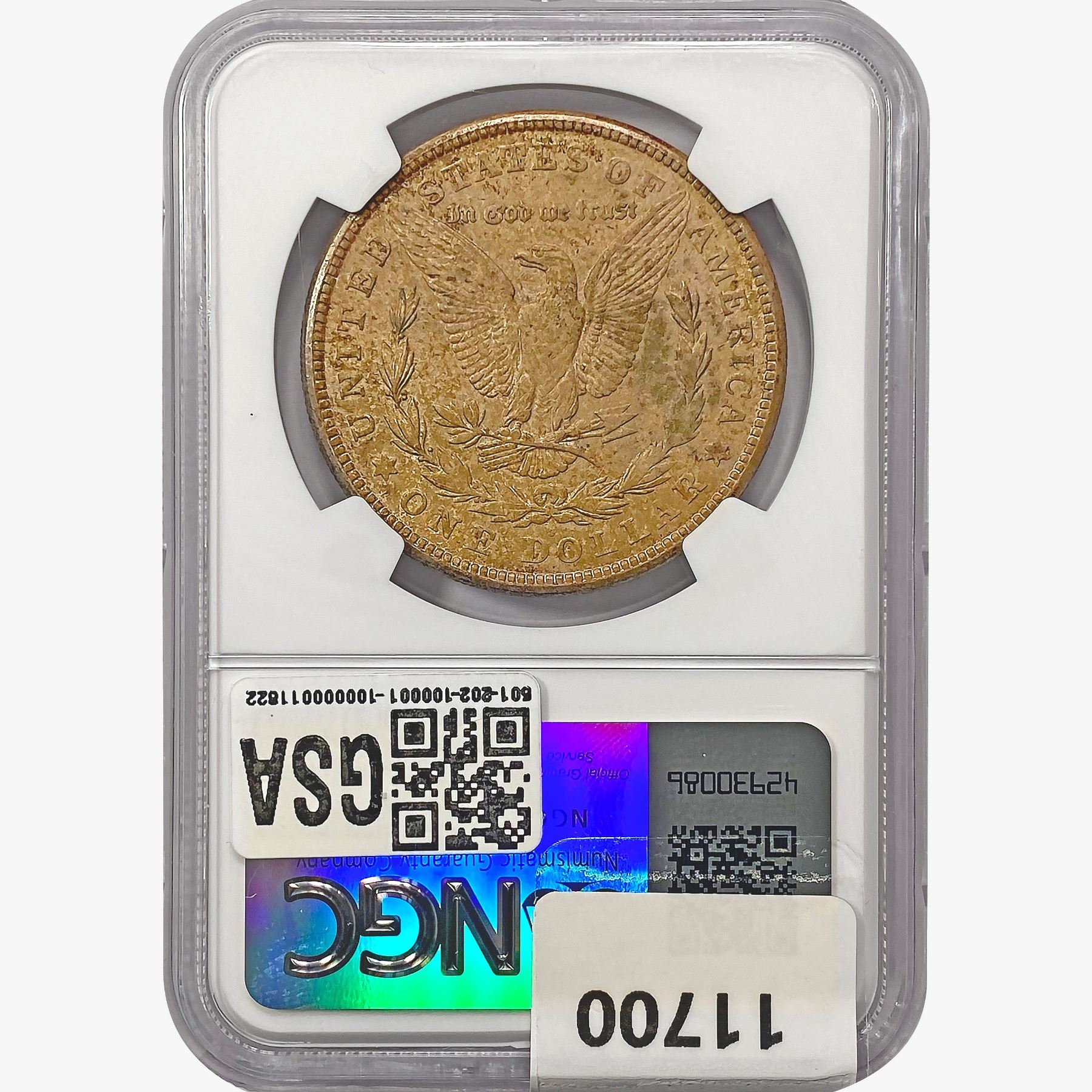 COINS AND CURRENCY LISTED IN GSA’S CATALOG AS GRADED AND ENCAPSULATED BY PCGS, NGC, ANACS, ICG, PCGS CURRENCY, PMG, PCGS BANKNOTE GRADING, CMC OR ANY OTHER THIRD-PARTY GRADING SERVICE ARE LIKEWISE SOLD “AS-IS” EXCEPT AS EXPRESSLY SET FORTH HEREIN. ALL THIRD-PARTY GRADING SERVICE GUARANTEES, INCLUDING AUTHENTICITY, ARE THE SOLE RESPONSIBILITY OF THE THIRD-PARTY GRADING SERVICE AND NOT WARRANTIES OR GUARANTEES OF GSA. BIDDERS SHOULD CONTACT THESE THIRD-PARTY GRADING SERVICES DIRECTLY WITH RESPECT TO ANY CLAIMS OR QUESTIONS THEY MAY HAVE CONCERNING THEIR GUARANTEES AND WARRANTIES. BIDDERS ACKNOWLEDGE AND AGREE THAT AUCTIONEER IS NOT BOUND BY OR LIABLE FOR ANY OPINION OR CERTIFICATION BY ANY THIRD-PARTY GRADING SERVICE. REMOVAL OF A PRODUCT FROM ITS PROTECTIVE CASING OR HOLDER OR ALTERATION OF ANY COIN HOLDER WAIVES ALL RIGHTS CONCERNING THE PRODUCT CONTAINED THEREIN.