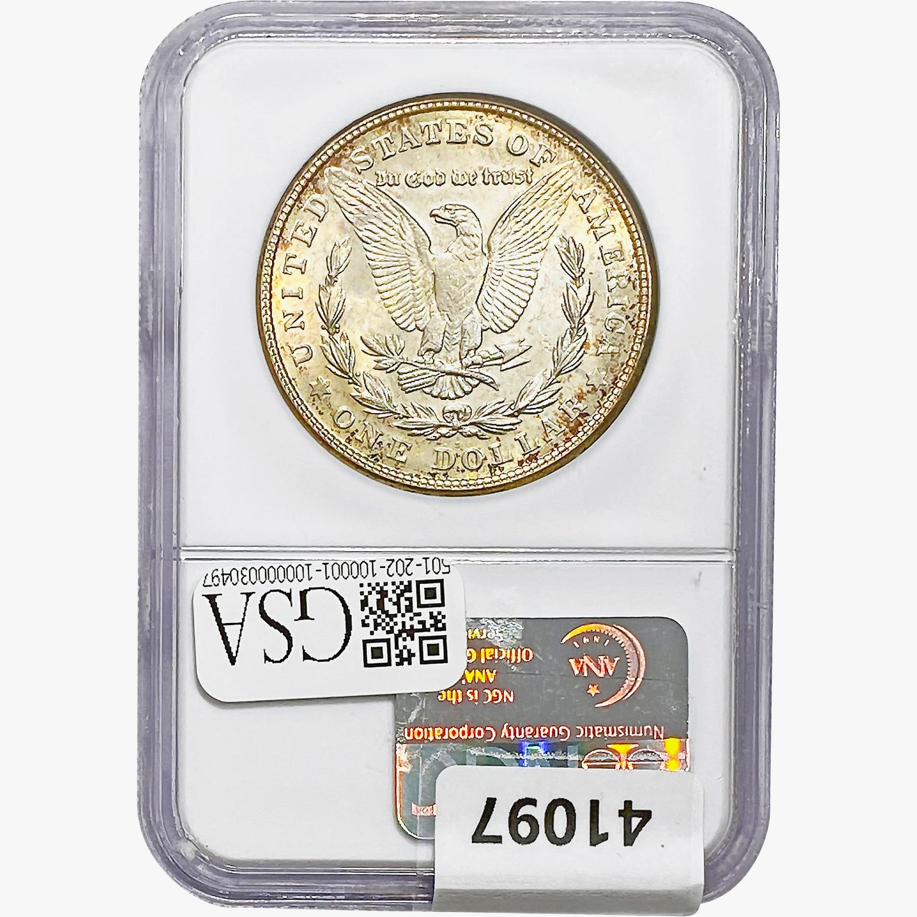 e. Coins sold referencing a third-party grading service are sold “AS IS” without any express or implied warranty, except for a guarantee by GSA that they are genuine. Removal or alteration of the holder, voids all of Bidder’s claims concerning that Product. Certain warranties may be available from the grading services and Bidders are referred to them for further details: Numismatic Guaranty Corporation (NGC), PO Box 4776, Sarasota, FL 34230, www.ngccoin.com/services/writtenguarantee.asp; Professional Coin Grading Services (PCGS), PO Box 9458, Newport Beach, CA 92658, www.pcgs.com/guarantee.html; ANACS, 6555 S. Kenton St., Ste. 303, Englewood, CO 80111; and Independent Coin Grading Co. (ICG), 7901 East Bellview, Ave., Suite 50, Englewood, CO 80111.
