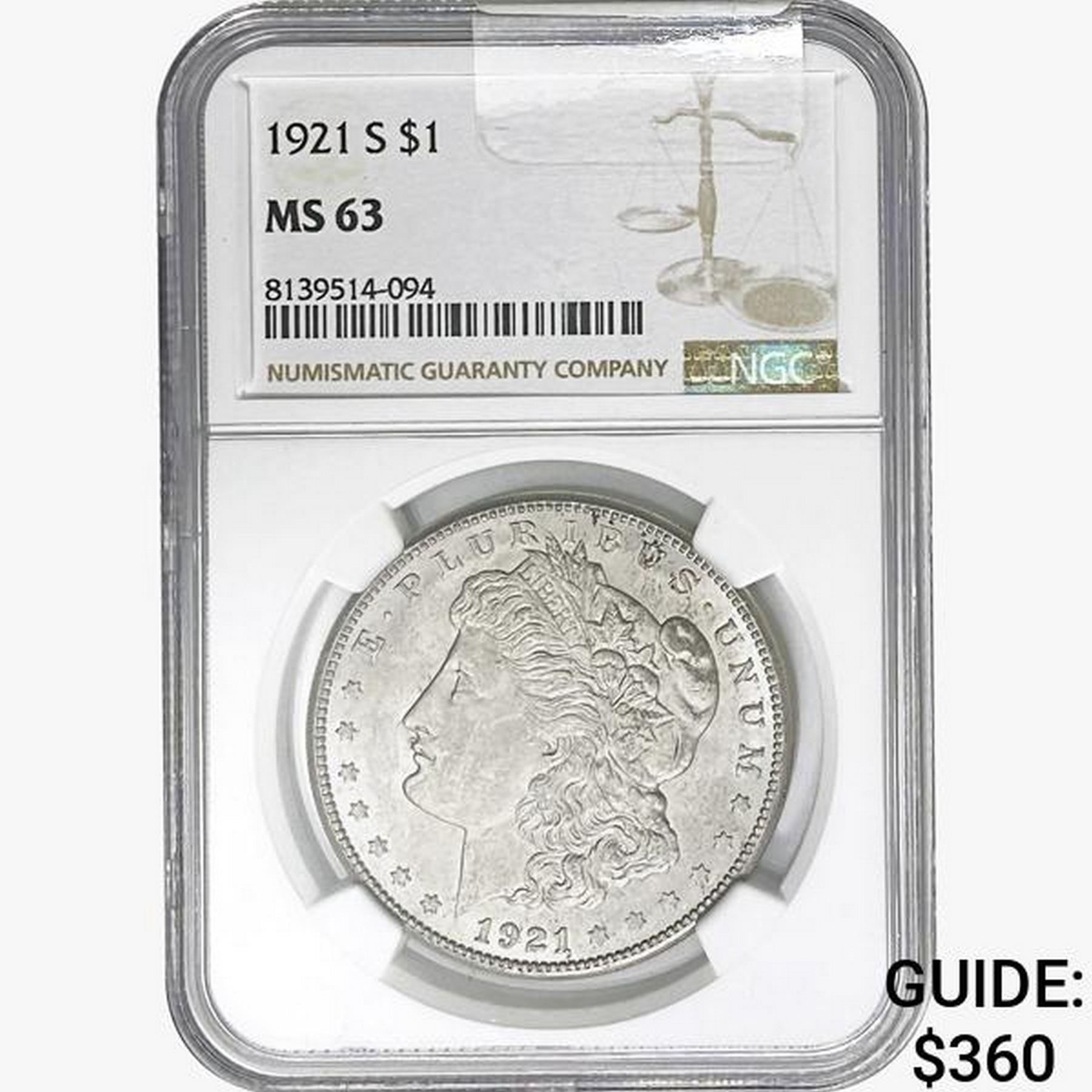 1921-S Morgan Silver Dollar NGC MS63