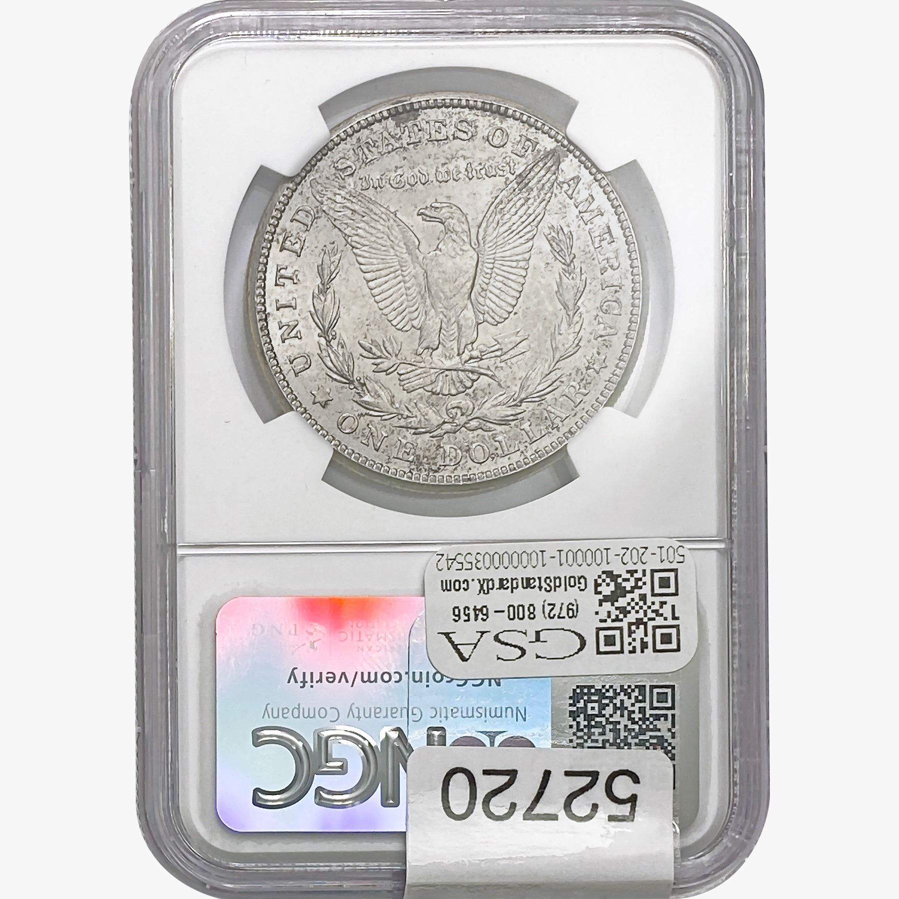 e. Coins sold referencing a third-party grading service are sold “AS IS” without any express or implied warranty, except for a guarantee by GSA that they are genuine. Removal or alteration of the holder, voids all of Bidder’s claims concerning that Product. Certain warranties may be available from the grading services and Bidders are referred to them for further details: Numismatic Guaranty Corporation (NGC), PO Box 4776, Sarasota, FL 34230, www.ngccoin.com/services/writtenguarantee.asp; Professional Coin Grading Services (PCGS), PO Box 9458, Newport Beach, CA 92658, www.pcgs.com/guarantee.html; ANACS, 6555 S. Kenton St., Ste. 303, Englewood, CO 80111; and Independent Coin Grading Co. (ICG), 7901 East Bellview, Ave., Suite 50, Englewood, CO 80111.