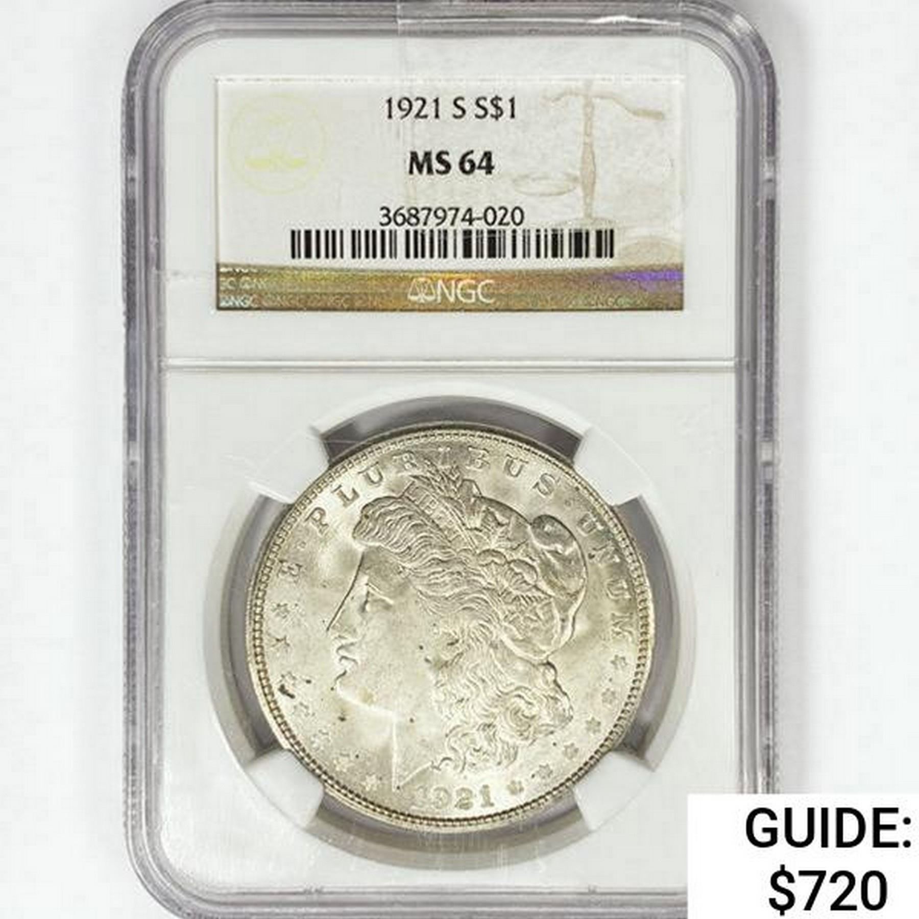1921-S Morgan Silver Dollar NGC MS64