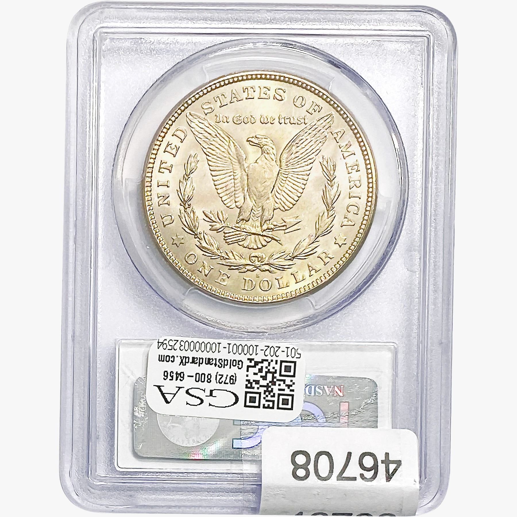 e. Coins sold referencing a third-party grading service are sold “AS IS” without any express or implied warranty, except for a guarantee by GSA that they are genuine. Removal or alteration of the holder, voids all of Bidder’s claims concerning that Product. Certain warranties may be available from the grading services and Bidders are referred to them for further details: Numismatic Guaranty Corporation (NGC), PO Box 4776, Sarasota, FL 34230, www.ngccoin.com/services/writtenguarantee.asp; Professional Coin Grading Services (PCGS), PO Box 9458, Newport Beach, CA 92658, www.pcgs.com/guarantee.html; ANACS, 6555 S. Kenton St., Ste. 303, Englewood, CO 80111; and Independent Coin Grading Co. (ICG), 7901 East Bellview, Ave., Suite 50, Englewood, CO 80111.