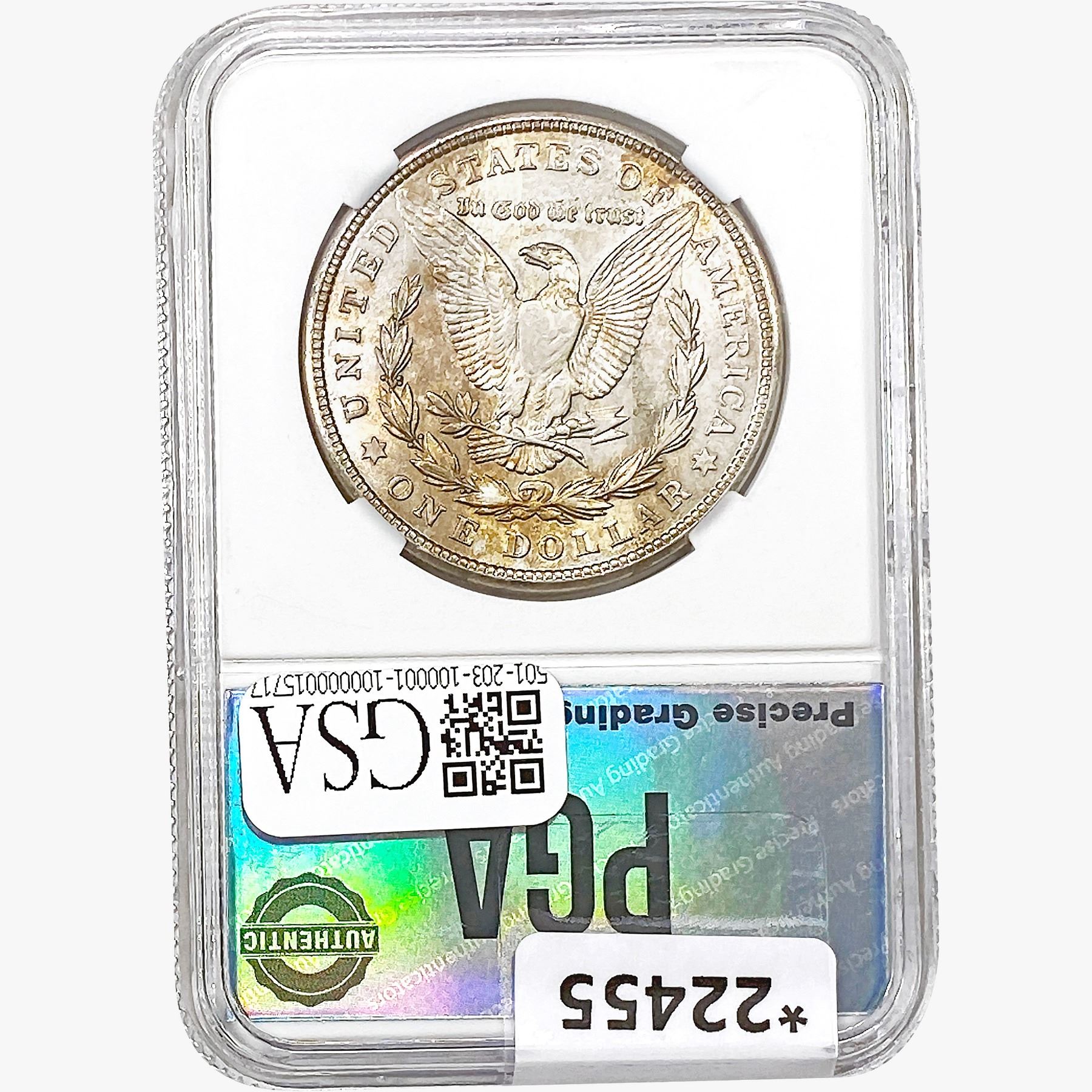 COINS AND CURRENCY LISTED IN GSA’S CATALOG AS GRADED AND ENCAPSULATED BY PCGS, NGC, ANACS, ICG, PCGS CURRENCY, PMG, PCGS BANKNOTE GRADING, CMC OR ANY OTHER THIRD-PARTY GRADING SERVICE ARE LIKEWISE SOLD “AS-IS” EXCEPT AS EXPRESSLY SET FORTH HEREIN. ALL THIRD-PARTY GRADING SERVICE GUARANTEES, INCLUDING AUTHENTICITY, ARE THE SOLE RESPONSIBILITY OF THE THIRD-PARTY GRADING SERVICE AND NOT WARRANTIES OR GUARANTEES OF GSA. BIDDERS SHOULD CONTACT THESE THIRD-PARTY GRADING SERVICES DIRECTLY WITH RESPECT TO ANY CLAIMS OR QUESTIONS THEY MAY HAVE CONCERNING THEIR GUARANTEES AND WARRANTIES. BIDDERS ACKNOWLEDGE AND AGREE THAT AUCTIONEER IS NOT BOUND BY OR LIABLE FOR ANY OPINION OR CERTIFICATION BY ANY THIRD-PARTY GRADING SERVICE. REMOVAL OF A PRODUCT FROM ITS PROTECTIVE CASING OR HOLDER OR ALTERATION OF ANY COIN HOLDER WAIVES ALL RIGHTS CONCERNING THE PRODUCT CONTAINED THEREIN.