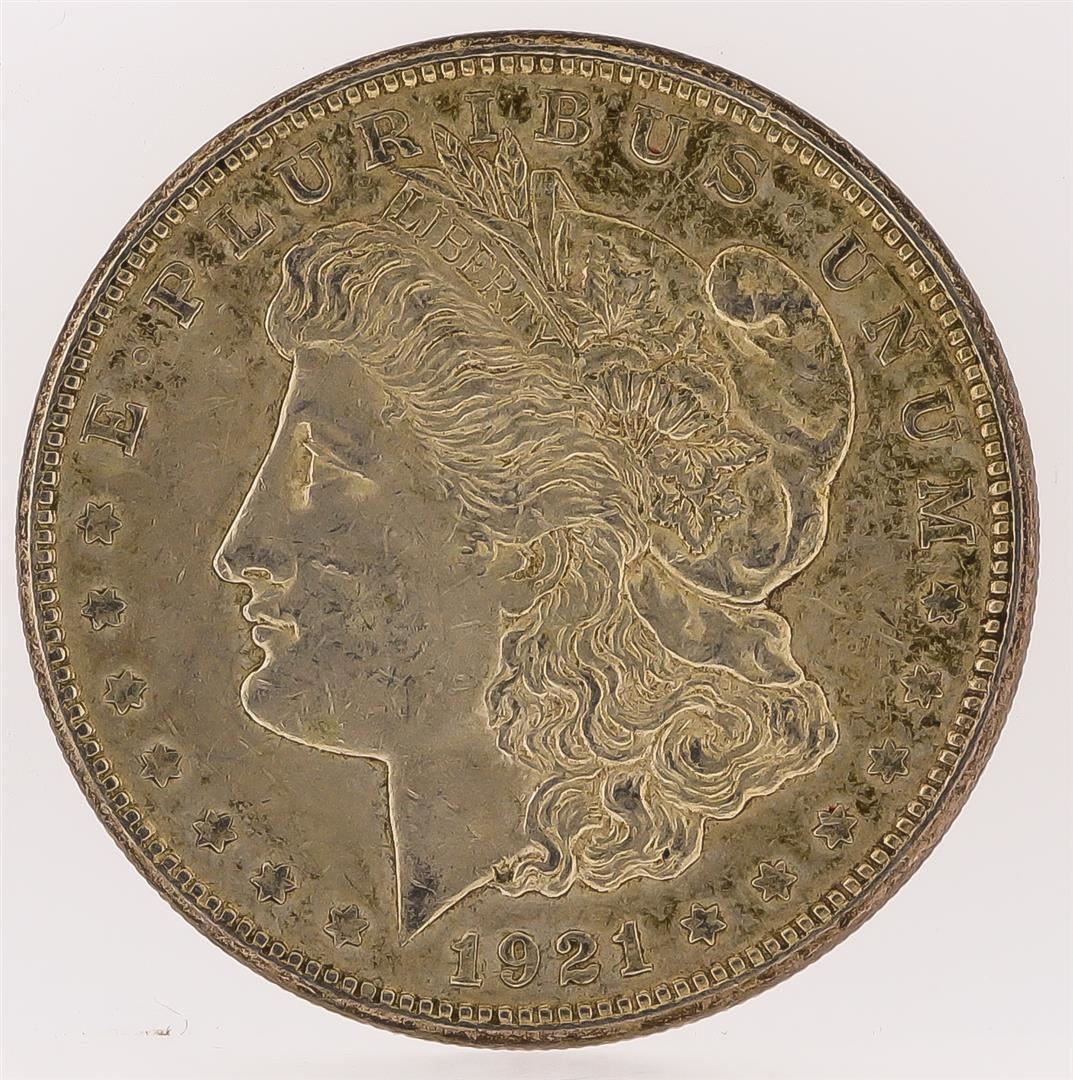 One 1921-S Morgan Silver Dollar.