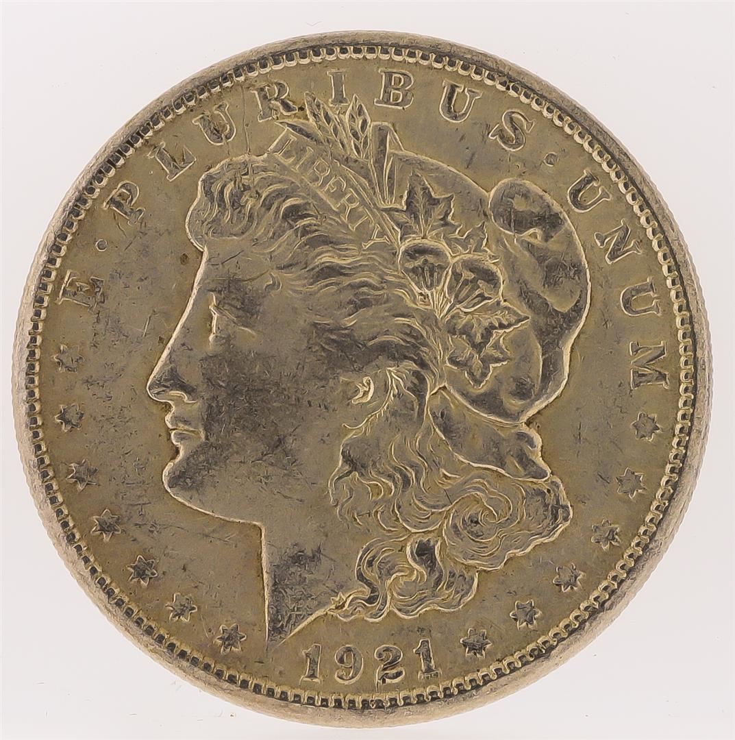 One 1921-S Morgan Silver Dollar.