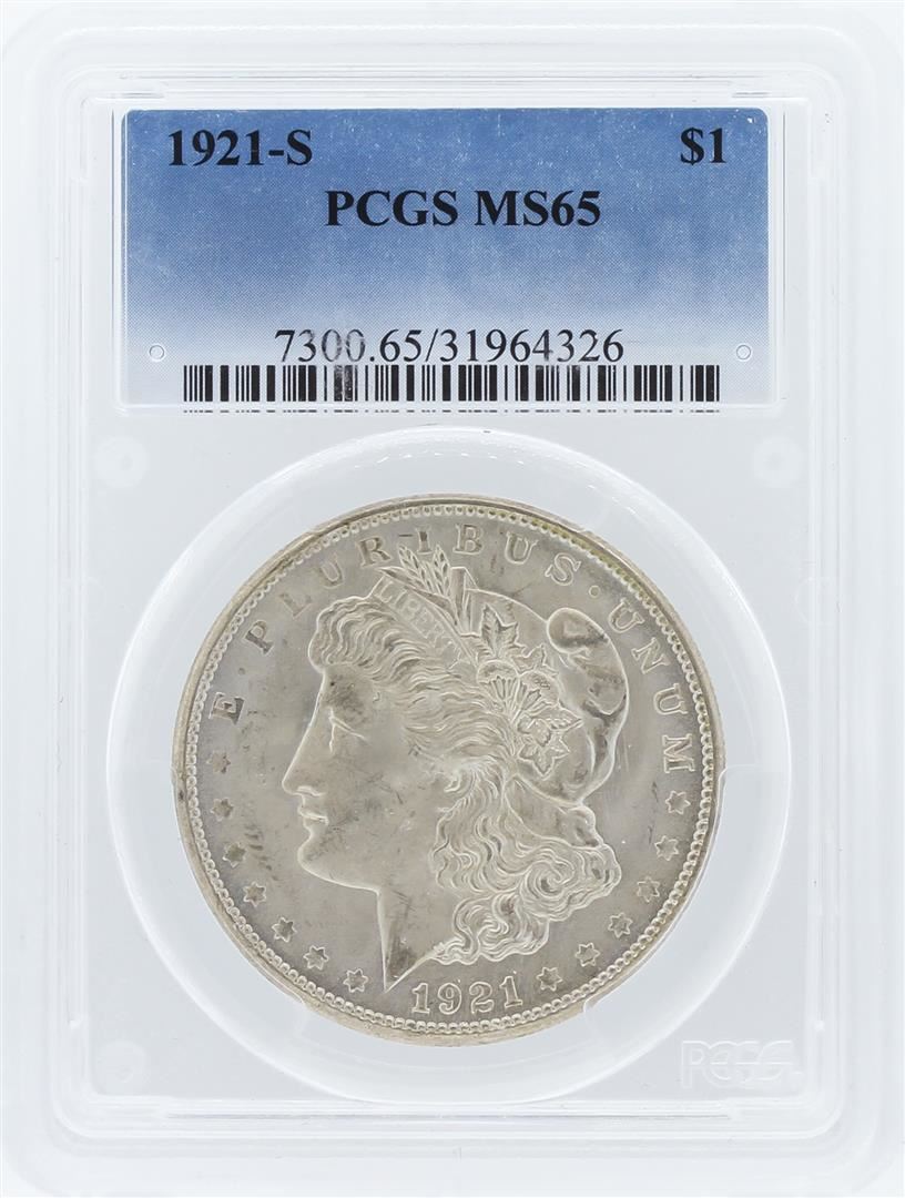 One 1921-S PCGS MS65 Morgan Silver Dollar. PCGS Certified.