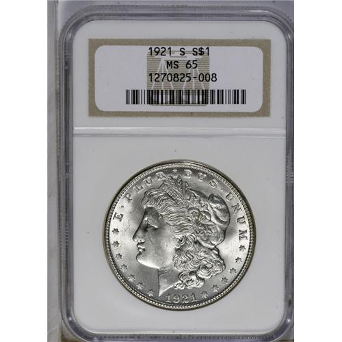 1921-S S$1 MS65 NGC. Frosty white, with an almost comp 1921-S
