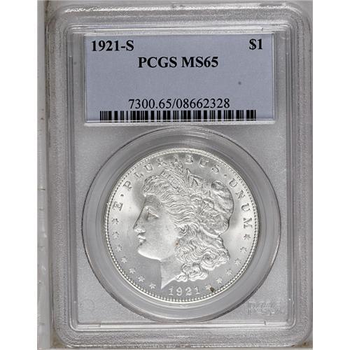 1921-S S$1 MS65 PCGS. A small spot of russet toning at