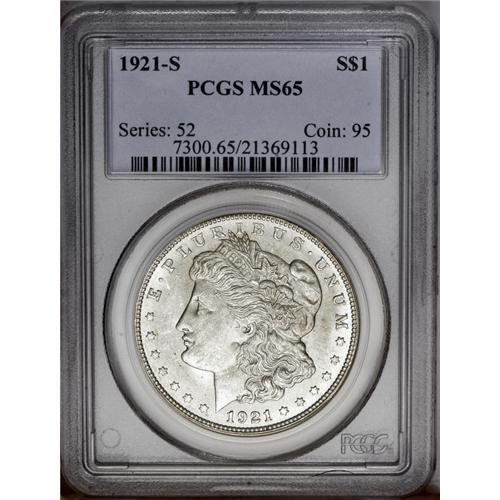 1921-S S$1 MS65 PCGS. Lustrous and lightly toned with 1921-S[img border='0' src='http://www.heritage