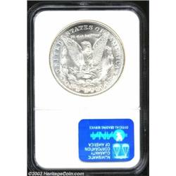 1921-S S$1 MS67 NGC. The consignor of this coin and the MS66 NGC example in the preceding lot obviously obtained this coin from the same original roll. The NGC insert numbers are consecutive, and, even more importantly, both examples were struck from the same dies as evidenced by the myriad polish lines (as struck) around the reverse periphery. It is a rare occurrence to find the '21-S is any significant quantity because, while individual Mint State survivors are plentiful in today's market, rolls and bags are infrequently encountered. A newcomer to the NGC Census Report, this coin is the single finest certified 1921-S Morgan Dollar at the two major grading services (1/03). The obverse exhibits a razor sharp appearance, particularly over Liberty's portrait. The reverse, on the other hand, is a little softly impressed over some of the eagle's breast feathers and the leaves in the wreath. We stress, however, that the latter feature is not at all uncommon for the issue, and it pales in significance when compared to the strong technical merits displayed by the smooth, brilliant-white surfaces. A Superb Gem that belongs in the collection of a Morgan Dollar specialists who demands the ultimate in quality.From an East Coast cabinet. Important notice: We expect to be auctioning lots at the rate of 200-250 per hour. On occasion eBay live bid software cannot keep up with the pace of the auctions where 4-5 lots per minute can hammer down, so we recommend that you place a realistic absentee bid now as insurance to avoid disappointment. Also please note that all Heritage/CAA lots purchased through eBay Live carry a 20% Buyer's Premium. Please make sure you read the Terms and Conditions.
