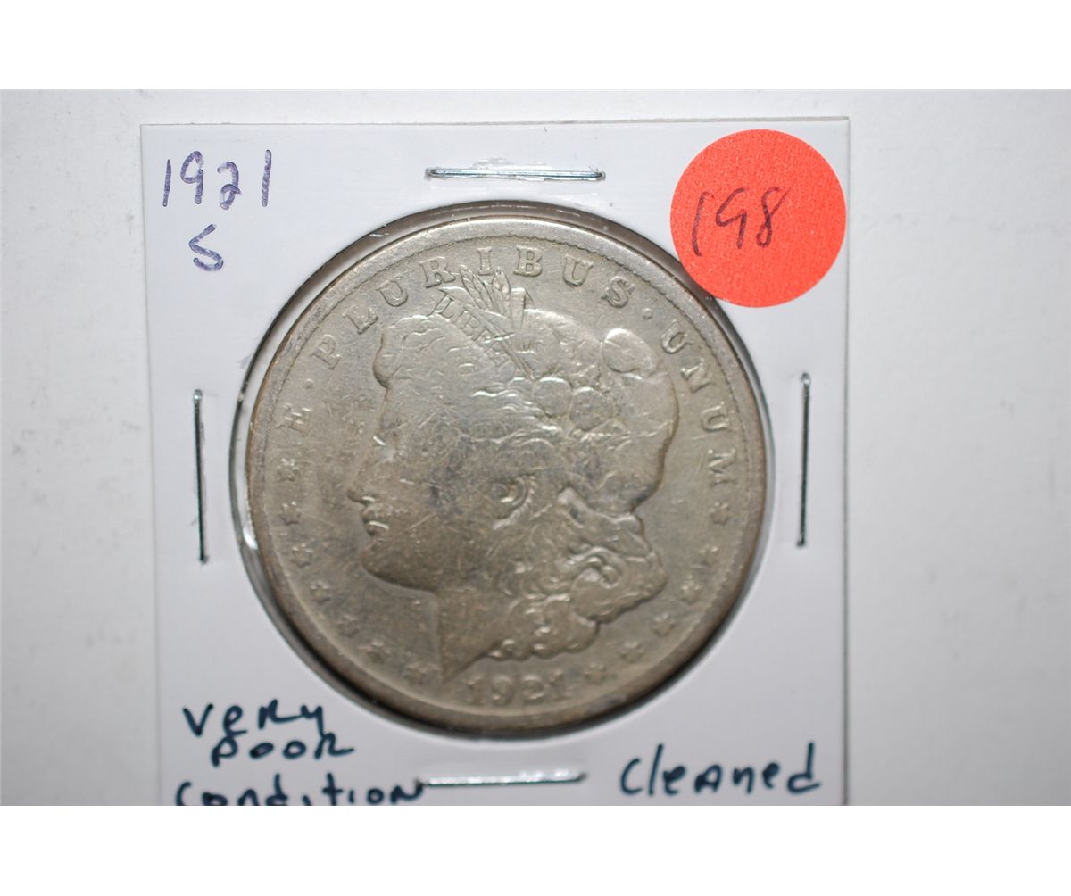 1921-S Silver Morgan $1; Very Poor Condition; Cleaned; EST. $20-30