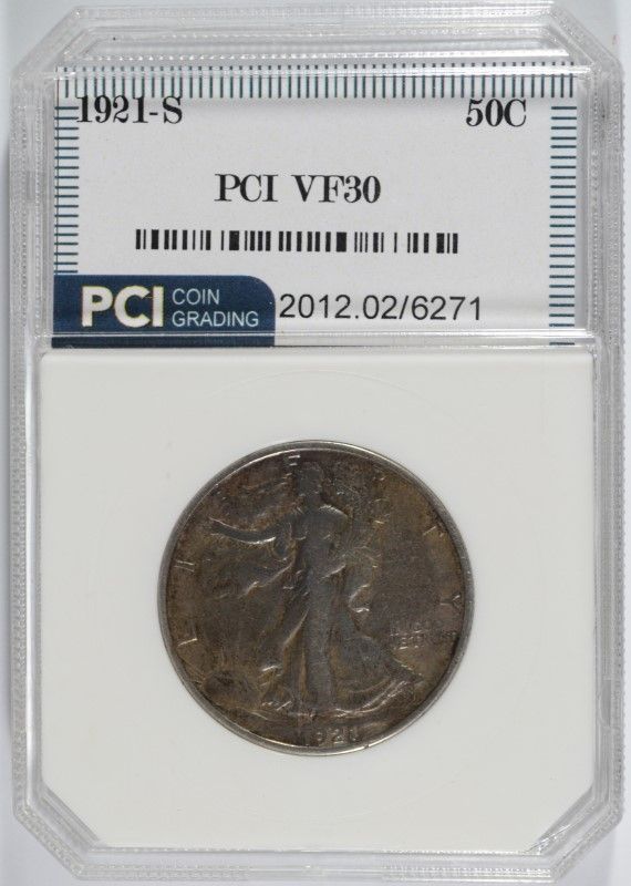 1921-S WALKING LIBERTY HALF DOLLAR, PCI VF-30