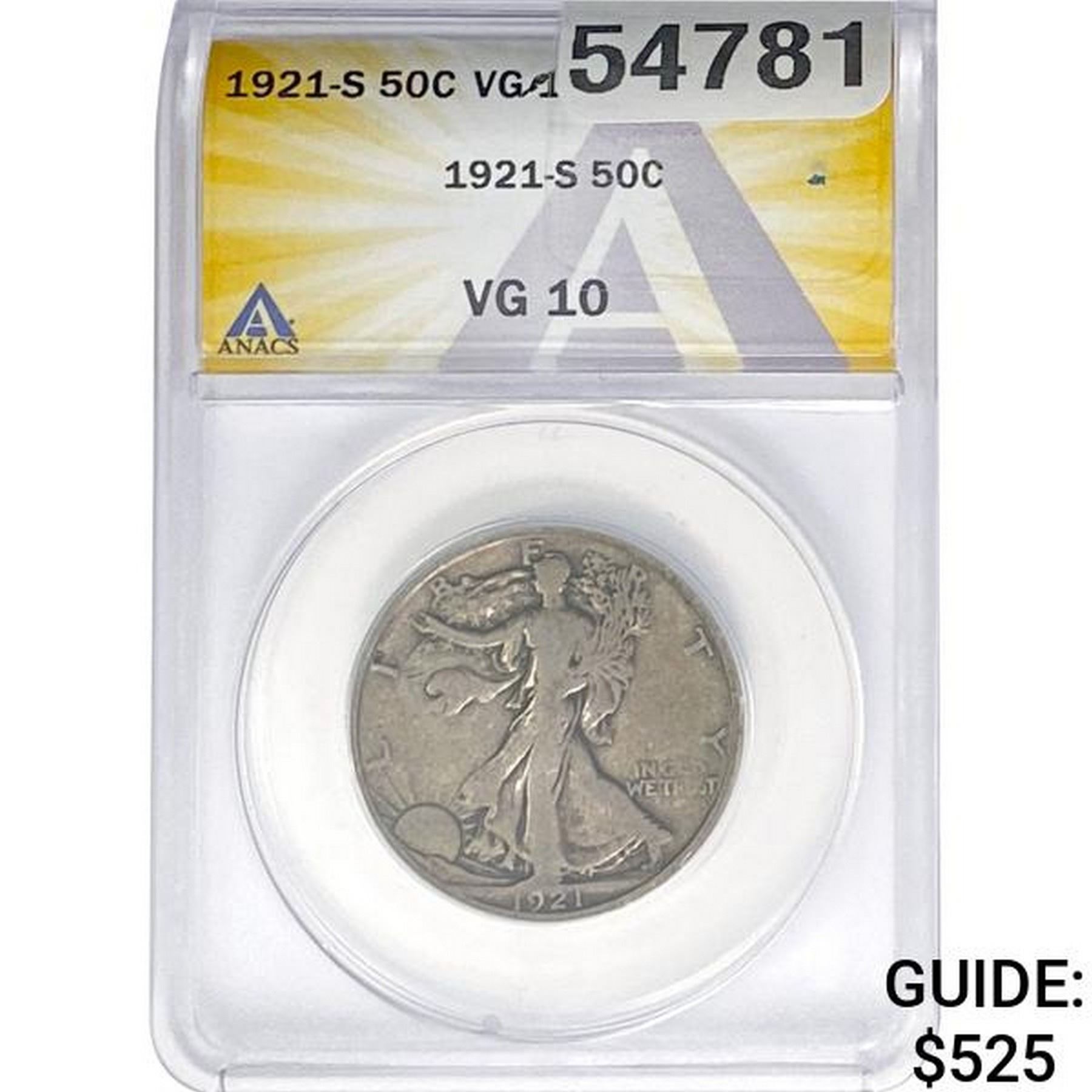1921-S Walking Liberty Half Dollar ANACS VG10