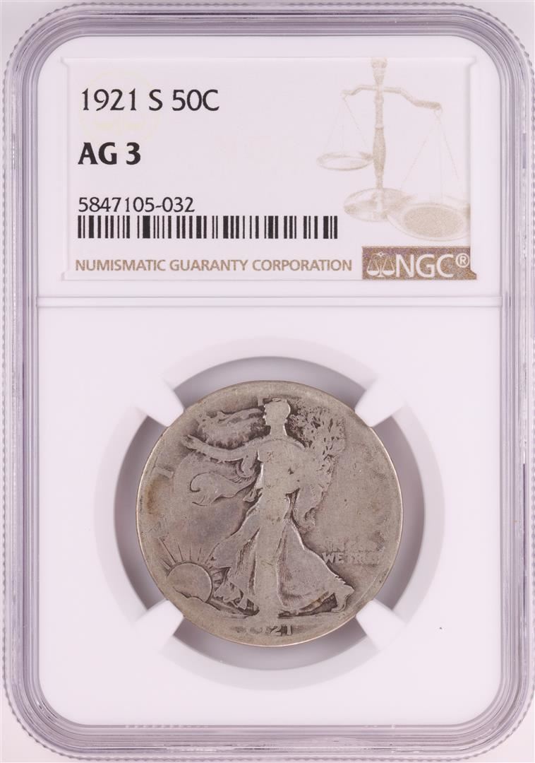 One 1921-S Walking Liberty Half Dollar Coin NGC AG3. NGC Certified.