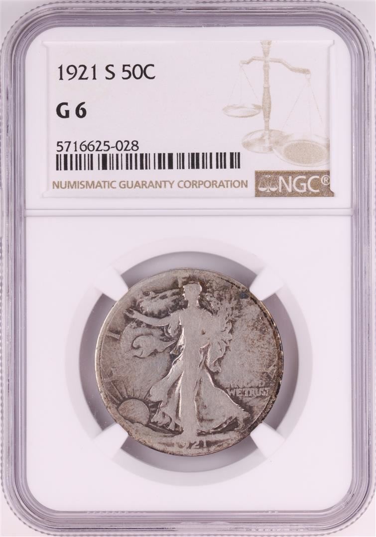 One 1921-S Walking Liberty Half Dollar Coin NGC G6. NGC Certified.