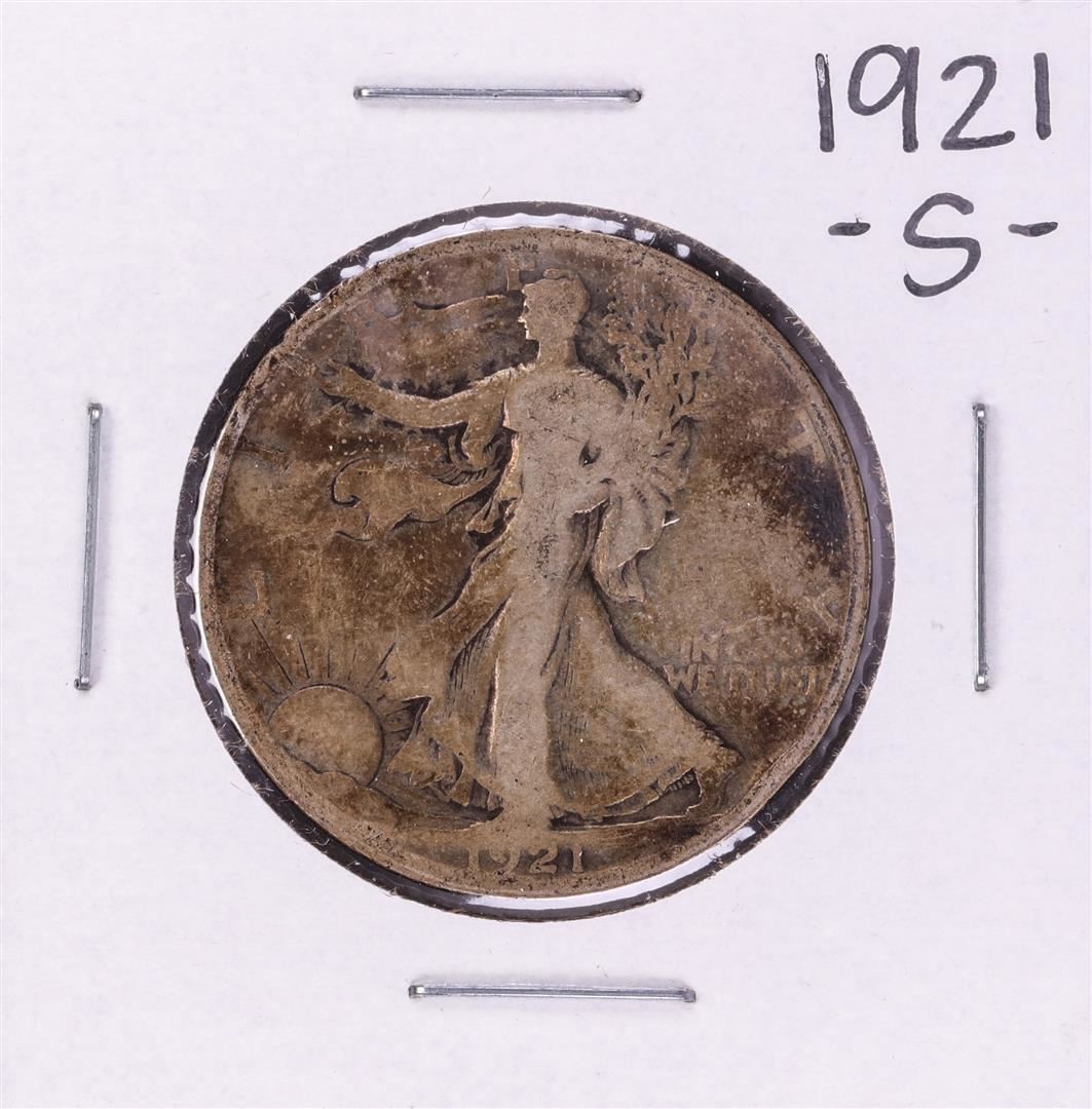 One 1921-S Walking Liberty Half Dollar Coin.
