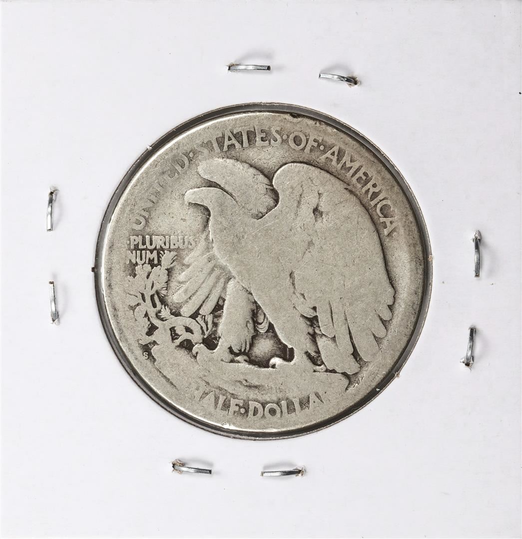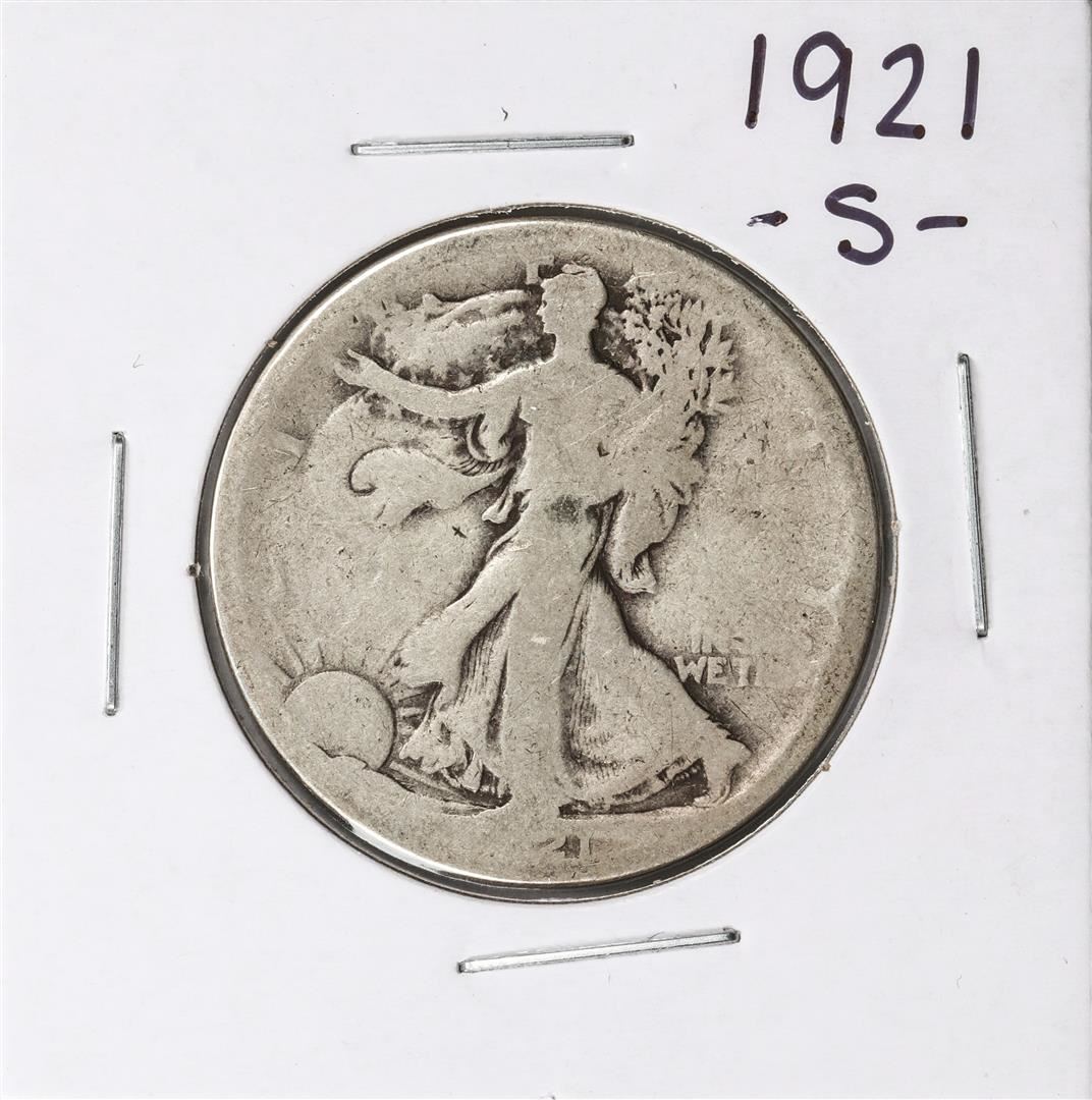 One 1921-S Walking Liberty Half Dollar Coin.