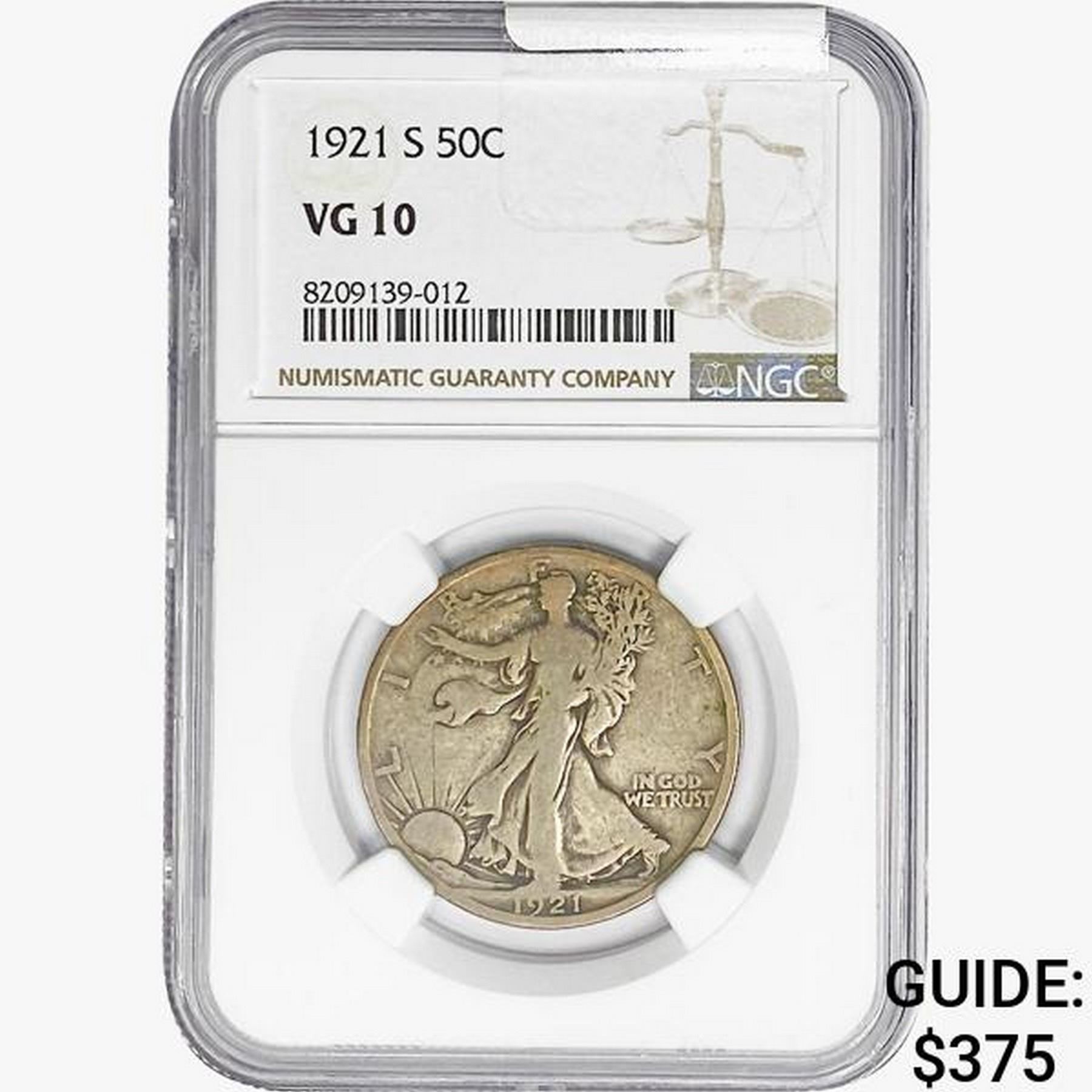 1921-S Walking Liberty Half Dollar NGC VG10