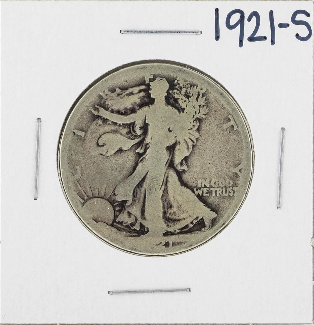 One 1921-S Walking Liberty Half Dollar Silver Coin.