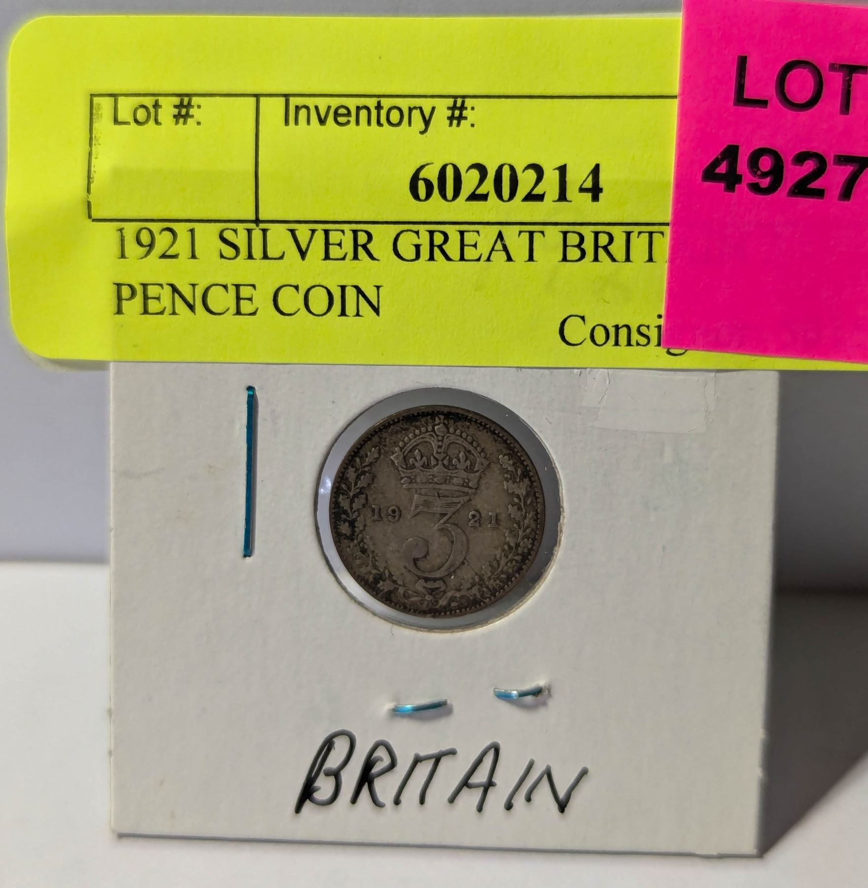 1921 SILVER GREAT BRITAIN 3 PENCE COIN