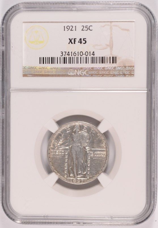 1921 STANDING LIBERTY QUARTER, NGC XF/AU-45 KEY COIN!!
