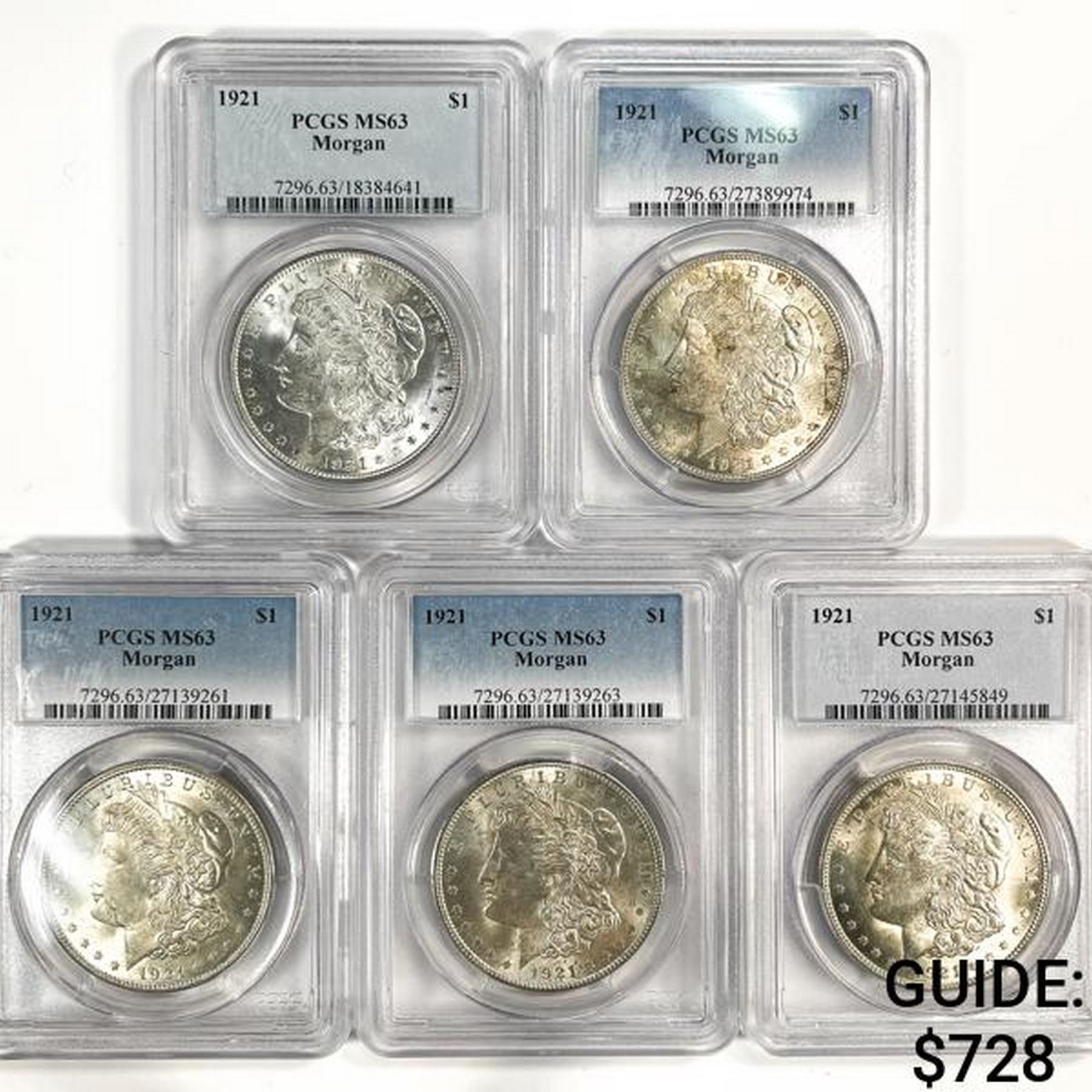 1921 Set (5) Morgan Silver Dollar PCGS MS63