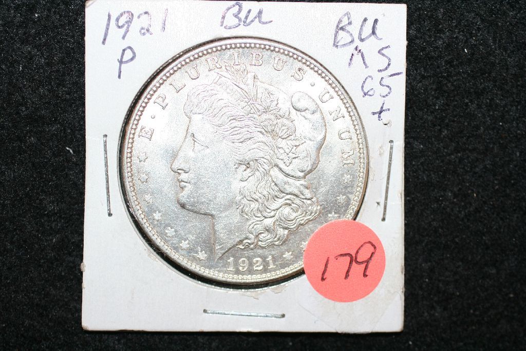 1921 Silver Morgan $1; BU MS65