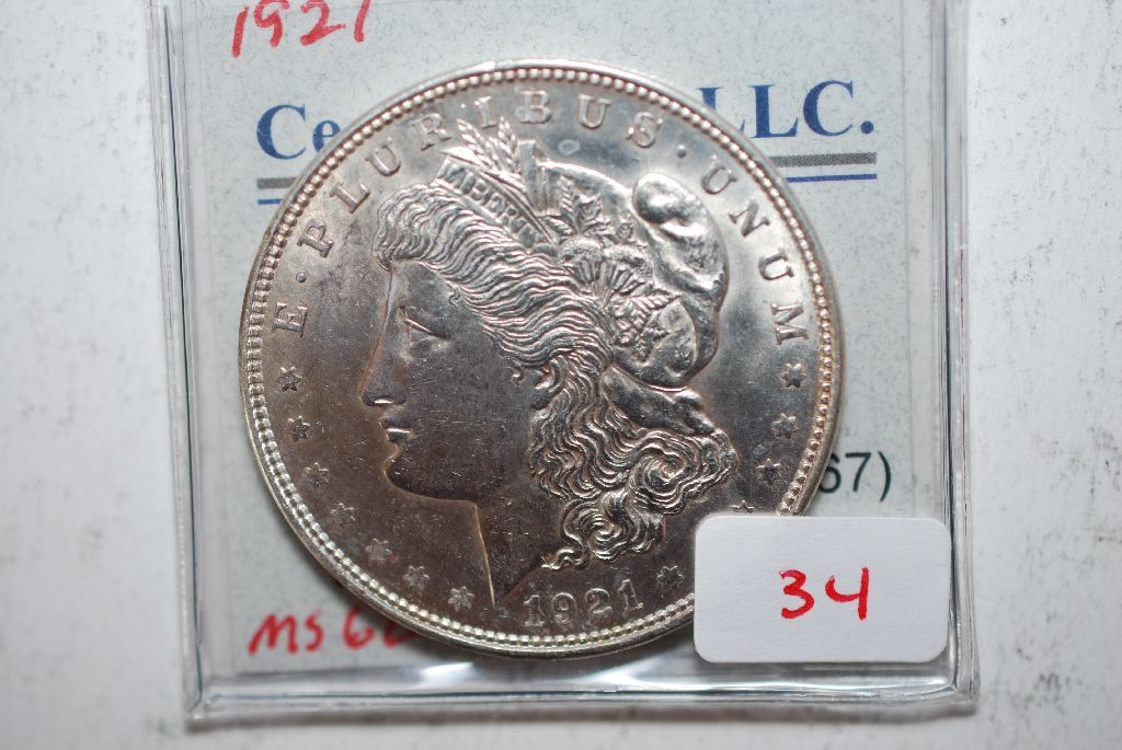 1921 Silver Morgan $1; MS62; EST. $50-60