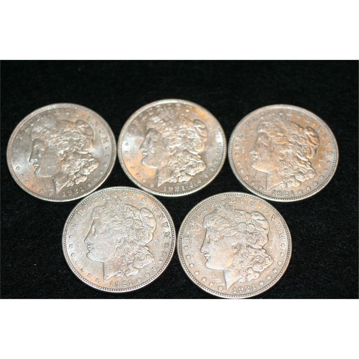 1921 Silver Morgan one dollar, lot of 5