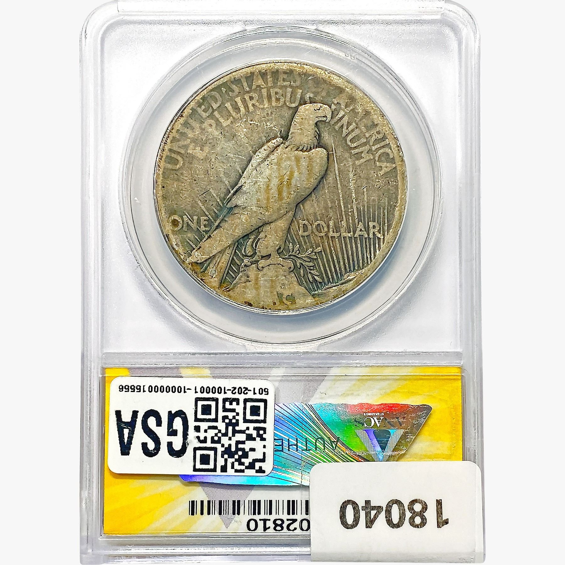COINS AND CURRENCY LISTED IN GSA’S CATALOG AS GRADED AND ENCAPSULATED BY PCGS, NGC, ANACS, ICG, PCGS CURRENCY, PMG, PCGS BANKNOTE GRADING, CMC OR ANY OTHER THIRD-PARTY GRADING SERVICE ARE LIKEWISE SOLD “AS-IS” EXCEPT AS EXPRESSLY SET FORTH HEREIN. ALL THIRD-PARTY GRADING SERVICE GUARANTEES, INCLUDING AUTHENTICITY, ARE THE SOLE RESPONSIBILITY OF THE THIRD-PARTY GRADING SERVICE AND NOT WARRANTIES OR GUARANTEES OF GSA. BIDDERS SHOULD CONTACT THESE THIRD-PARTY GRADING SERVICES DIRECTLY WITH RESPECT TO ANY CLAIMS OR QUESTIONS THEY MAY HAVE CONCERNING THEIR GUARANTEES AND WARRANTIES. BIDDERS ACKNOWLEDGE AND AGREE THAT AUCTIONEER IS NOT BOUND BY OR LIABLE FOR ANY OPINION OR CERTIFICATION BY ANY THIRD-PARTY GRADING SERVICE. REMOVAL OF A PRODUCT FROM ITS PROTECTIVE CASING OR HOLDER OR ALTERATION OF ANY COIN HOLDER WAIVES ALL RIGHTS CONCERNING THE PRODUCT CONTAINED THEREIN.