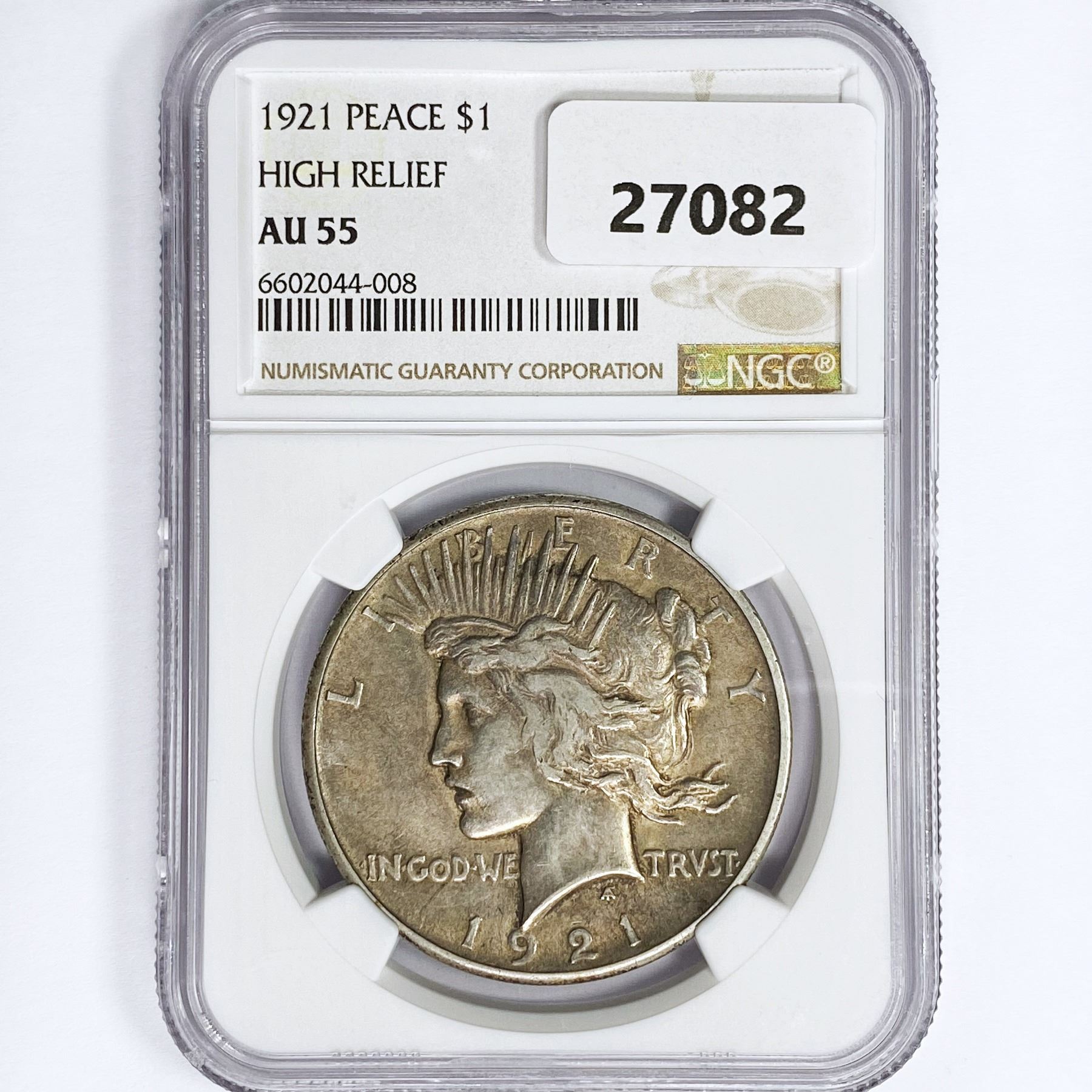 1921 Silver Peace Dollar NGC AU55 High Relief