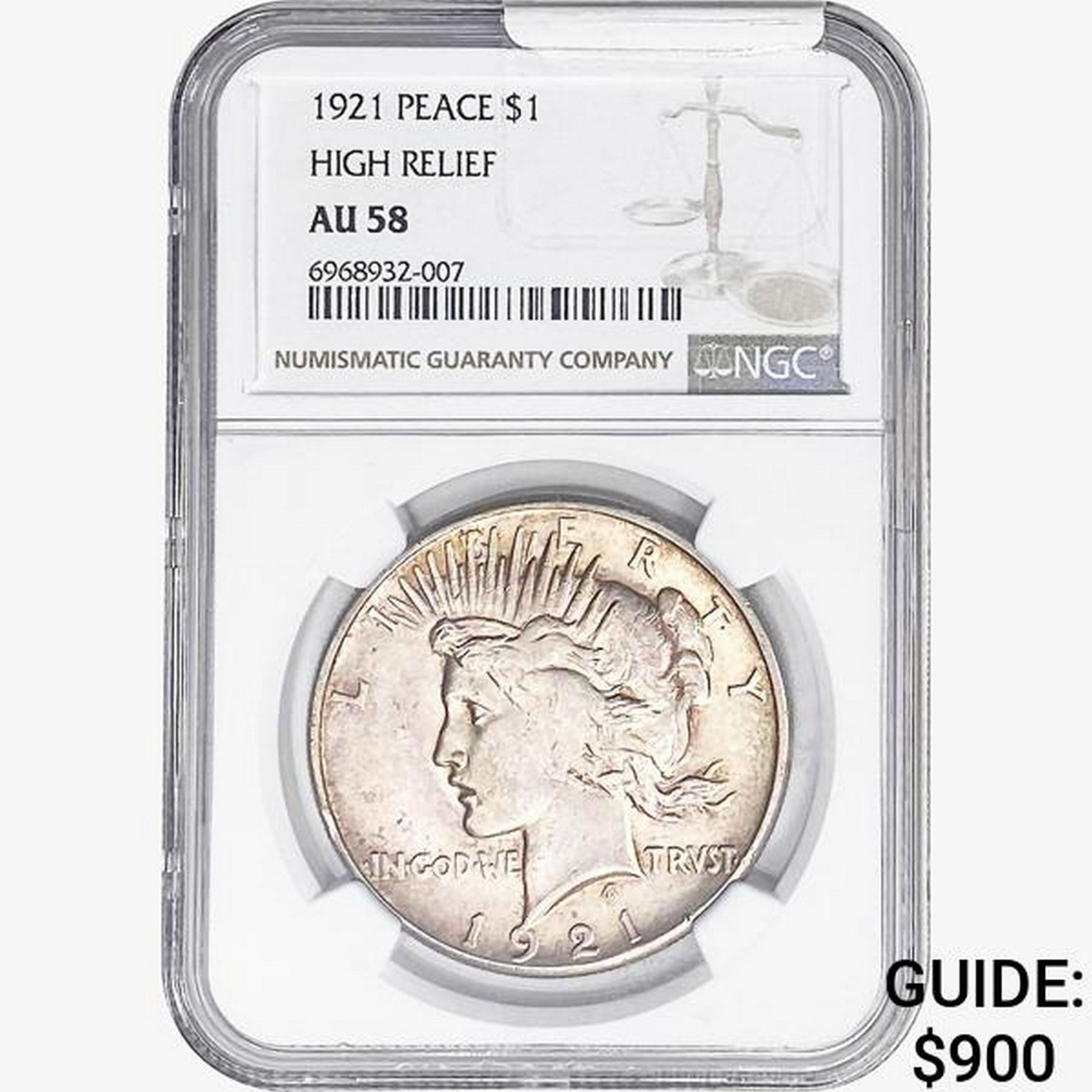 1921 Silver Peace Dollar NGC AU58 High Relief