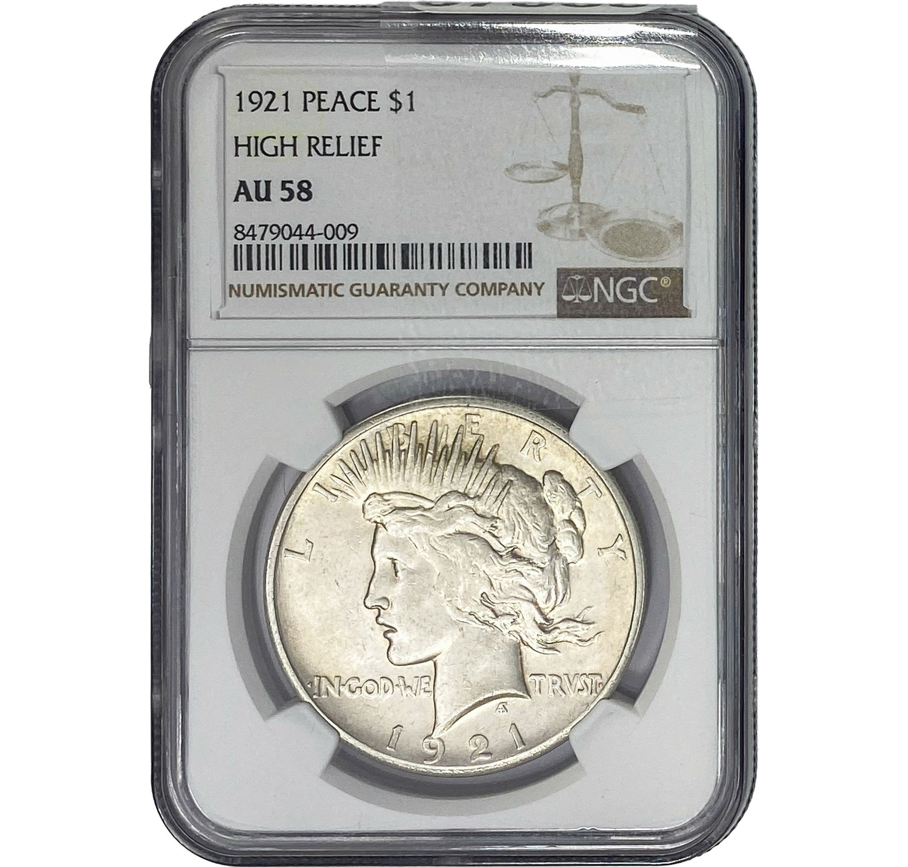 1921 Silver Peace Dollar NGC AU58 High Relief