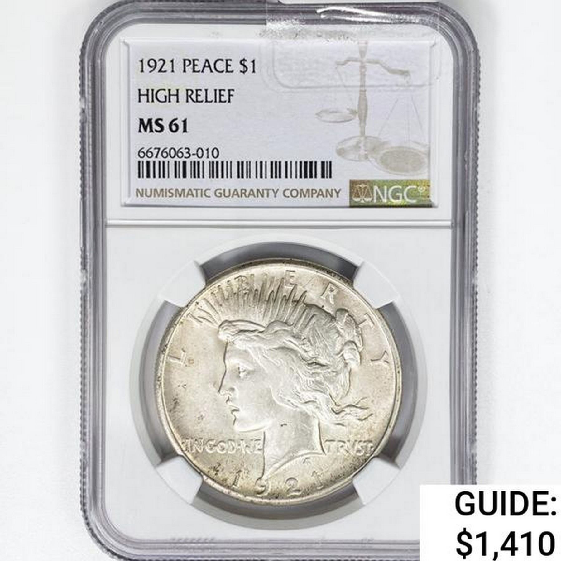 1921 Silver Peace Dollar NGC MS61 High Relief