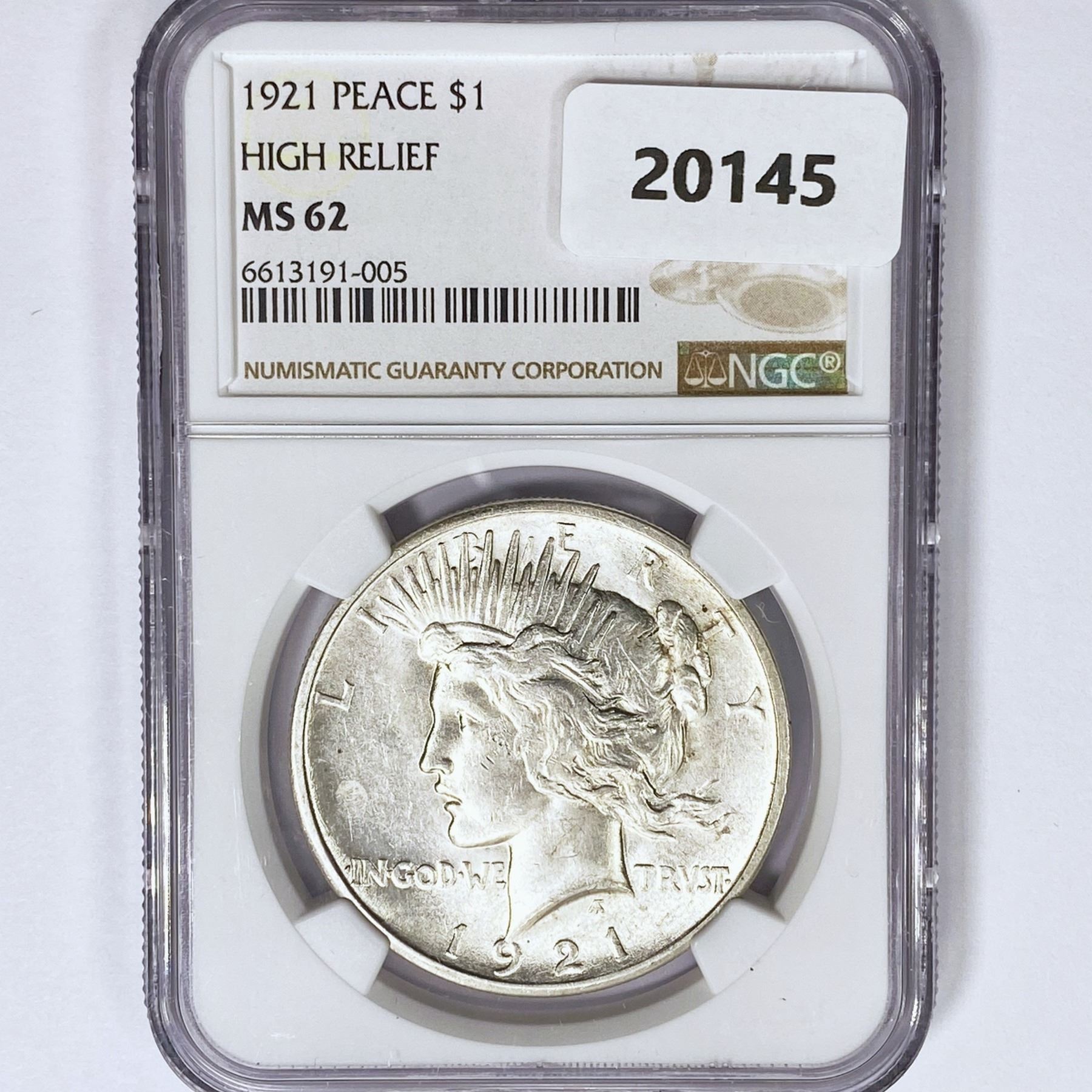1921 Silver Peace Dollar NGC MS62 High Relief