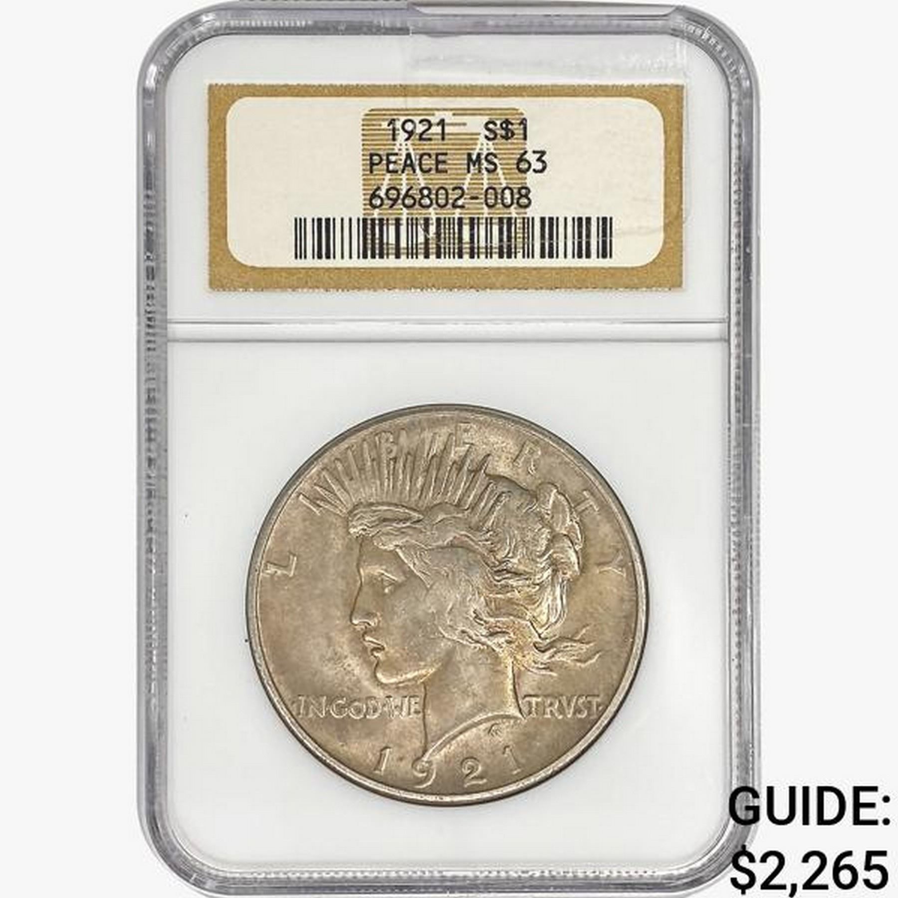 1921 Silver Peace Dollar NGC MS63