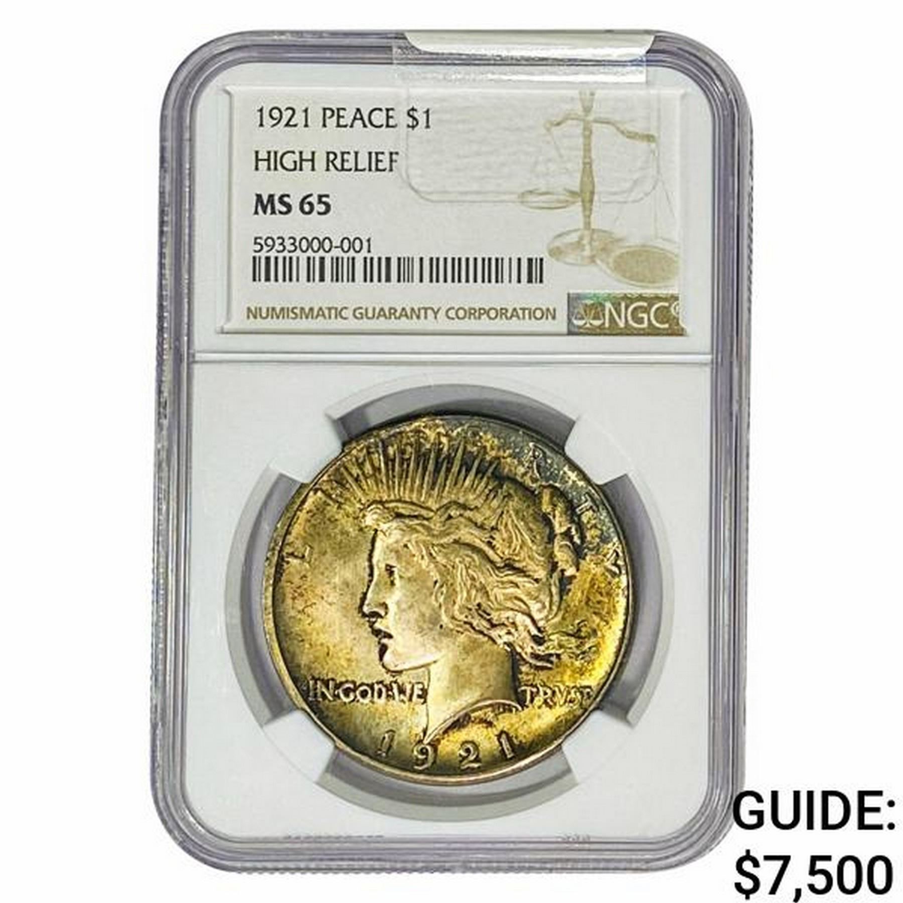 1921 Silver Peace Dollar NGC MS65 High Relief