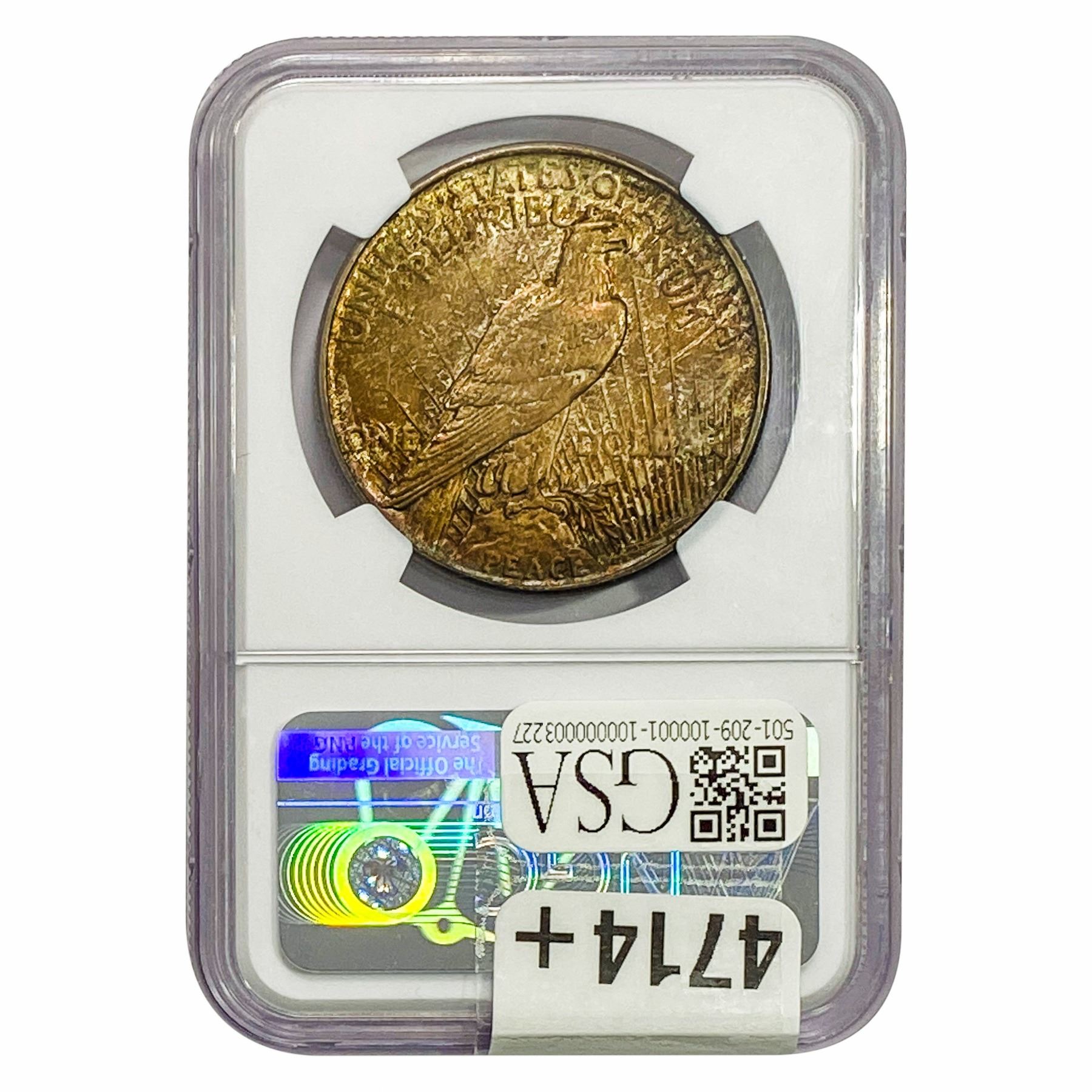 COINS AND CURRENCY LISTED IN GSA’S CATALOG AS GRADED AND ENCAPSULATED BY PCGS, NGC, ANACS, ICG, PCGS CURRENCY, PMG, PCGS BANKNOTE GRADING, CMC OR ANY OTHER THIRD-PARTY GRADING SERVICE ARE LIKEWISE SOLD “AS-IS” EXCEPT AS EXPRESSLY SET FORTH HEREIN. ALL THIRD-PARTY GRADING SERVICE GUARANTEES, INCLUDING AUTHENTICITY, ARE THE SOLE RESPONSIBILITY OF THE THIRD-PARTY GRADING SERVICE AND NOT WARRANTIES OR GUARANTEES OF GSA. BIDDERS SHOULD CONTACT THESE THIRD-PARTY GRADING SERVICES DIRECTLY WITH RESPECT TO ANY CLAIMS OR QUESTIONS THEY MAY HAVE CONCERNING THEIR GUARANTEES AND WARRANTIES. BIDDERS ACKNOWLEDGE AND AGREE THAT AUCTIONEER IS NOT BOUND BY OR LIABLE FOR ANY OPINION OR CERTIFICATION BY ANY THIRD-PARTY GRADING SERVICE. REMOVAL OF A PRODUCT FROM ITS PROTECTIVE CASING OR HOLDER OR ALTERATION OF ANY COIN HOLDER WAIVES ALL RIGHTS CONCERNING THE PRODUCT CONTAINED THEREIN.