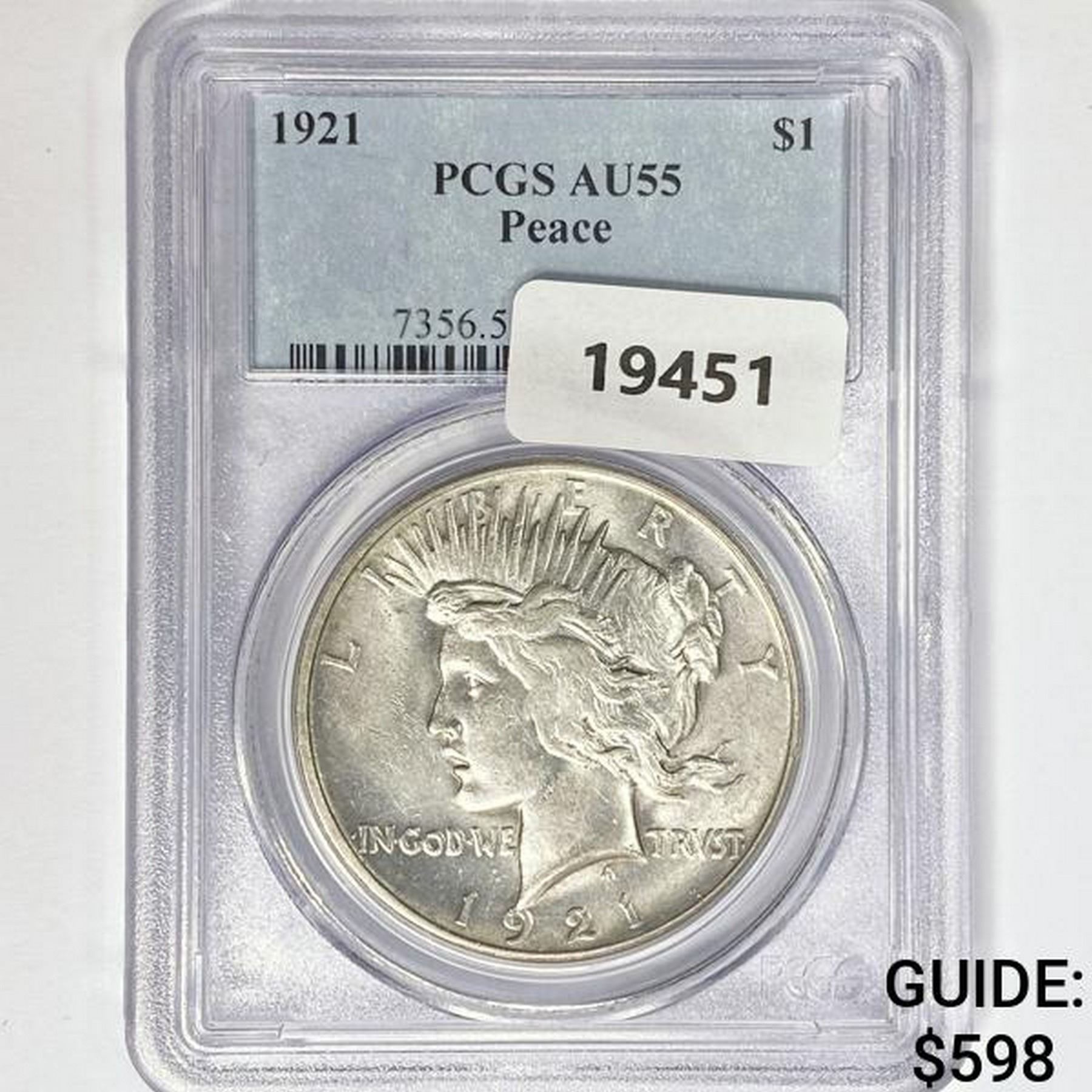 1921 Silver Peace Dollar PCGS AU55