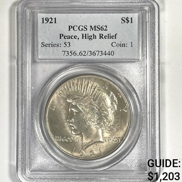 1921 Silver Peace Dollar PCGS-MS62 High Relief